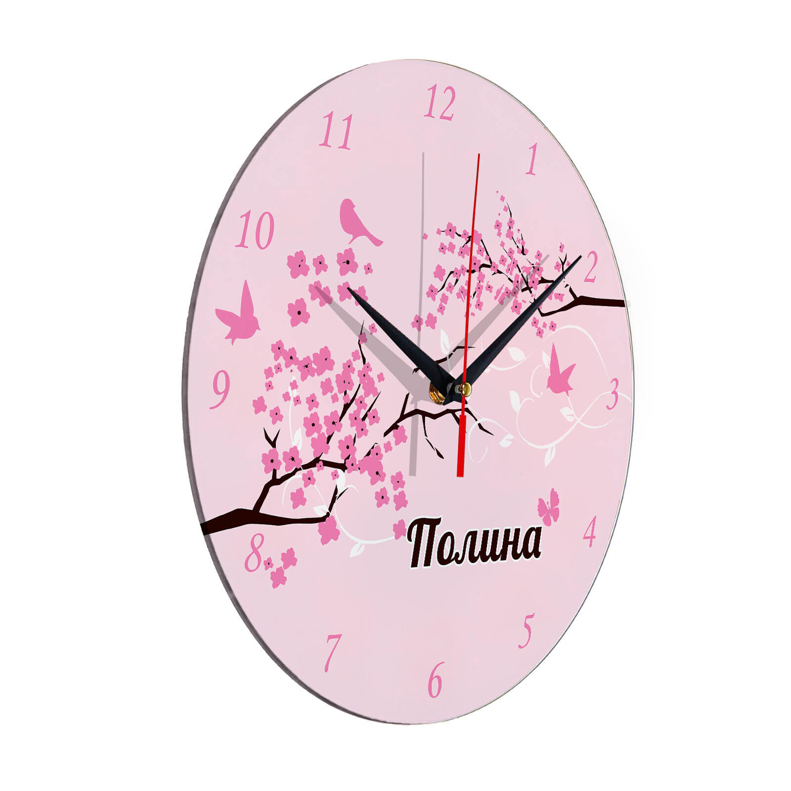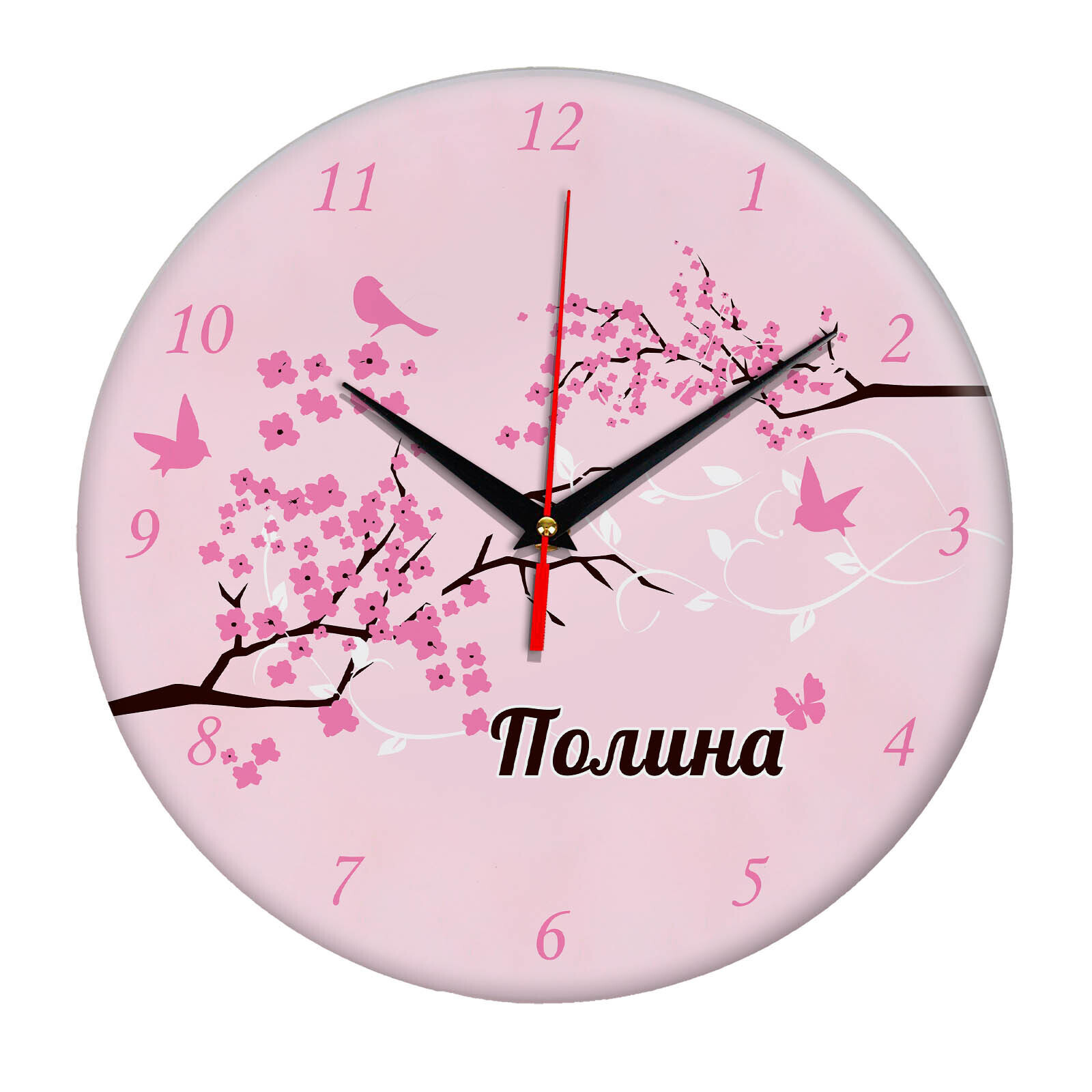 Часы с именем "Полина" размер часов 28х28 см, стекло 4 мм, изображение печатаем ULTRA HD качества. Оно нанесено с обратной стороны. Стекло дает глубокий оптический эффект и защиту от выгорания ярких цветов. Механизм кварцевый с плавным ходом работает от пальчиковой батарейки АА. Стекло закалено и покрыто с обратной стороны защитной пленкой для защиты изображения и для безопасности. Упаковка из белого гофрокартона с дополнительными элементами для сохранности стеклянного циферблата. Размер упаковки: 0,3х0,3х0,04 м , масса 0,8 кг.