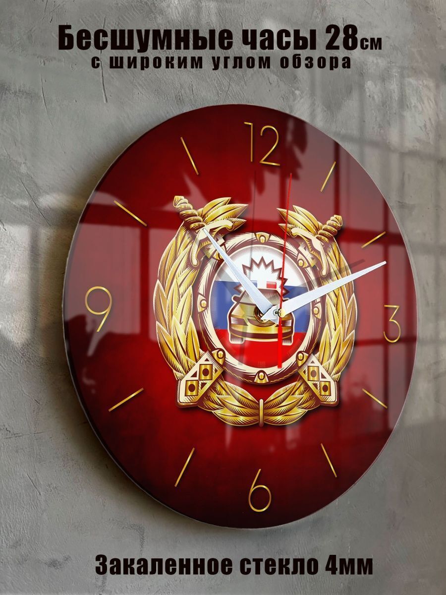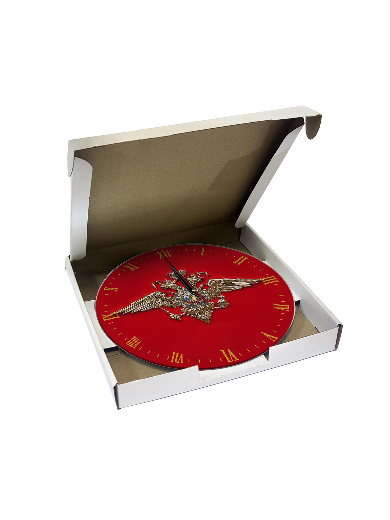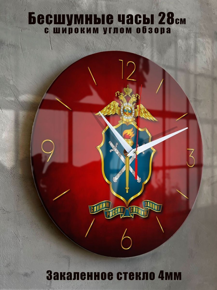 Часы с изображением эмблемы спецслужб и герба РФ, ведомственного герба. При производстве интерьерных часов с оригинальным дизайном, используется уникальная технология нанесения изображения ULTRA HD качества на стеклянную поверхность, благодаря чему изображение приобретает особую реалистичность и оптическую глубину цвета. Фотопечать наносится на обратную сторону закаленного стекла толщиной 4 мм, что дает насыщенный зрительный 3д эффект, а также защищает от прямого солнечного воздействия и выцветания сочной цветовой гаммы. Кварцевый механизм (не электронные с подсветкой) имеет плавный ход, часы бесшумные. Помимо выполнения своей основной функции – определения времени, настенные часы картина являются уникальным элементом декора, от которого во многом зависит внешний вид помещения. Часы на стену впишутся в любой современный стиль в качестве аксессуара и декора для интерьера дома и дачи, офиса (офисные), кабинет, в гостиной среди декоративных элементов. Необычные часы круглые комнатные станут оригинальным подарком на профессиональный праздник. Федеральная налоговая служба ФНС, Федеральная Таможенная служба ФТС, Полиция, МЧС, ФСБ, ФСИН, МВД Росии, Министерство Юстиции, Военная полиция, ОМОН, Судебный пристав, Следственный отдел, Уголовный розыск, Министерство обороны РФ, ФСО России, Прокуратура, СК РФ, ДПС России, Росгвардия, Фемида, Военно-морской флот России ВМФ, Воздушно-космические силы ВКС, Пограничные войска, Прокуратура, Следственный комитет, ГИБДД. Презент на день рождения начальнику мужчине, женщине, шефу, коллеге, брату, другу, подруге, папе, маме, мужу или любимому человеку на новый год, рождество, 23 февраля, 9 мая. Будьте уверены, такой сувенир на праздник все оценят по достоинству. Упакованы в защитный гофрокартон с дополнительными элементами для сохранности циферблата и стрелок.