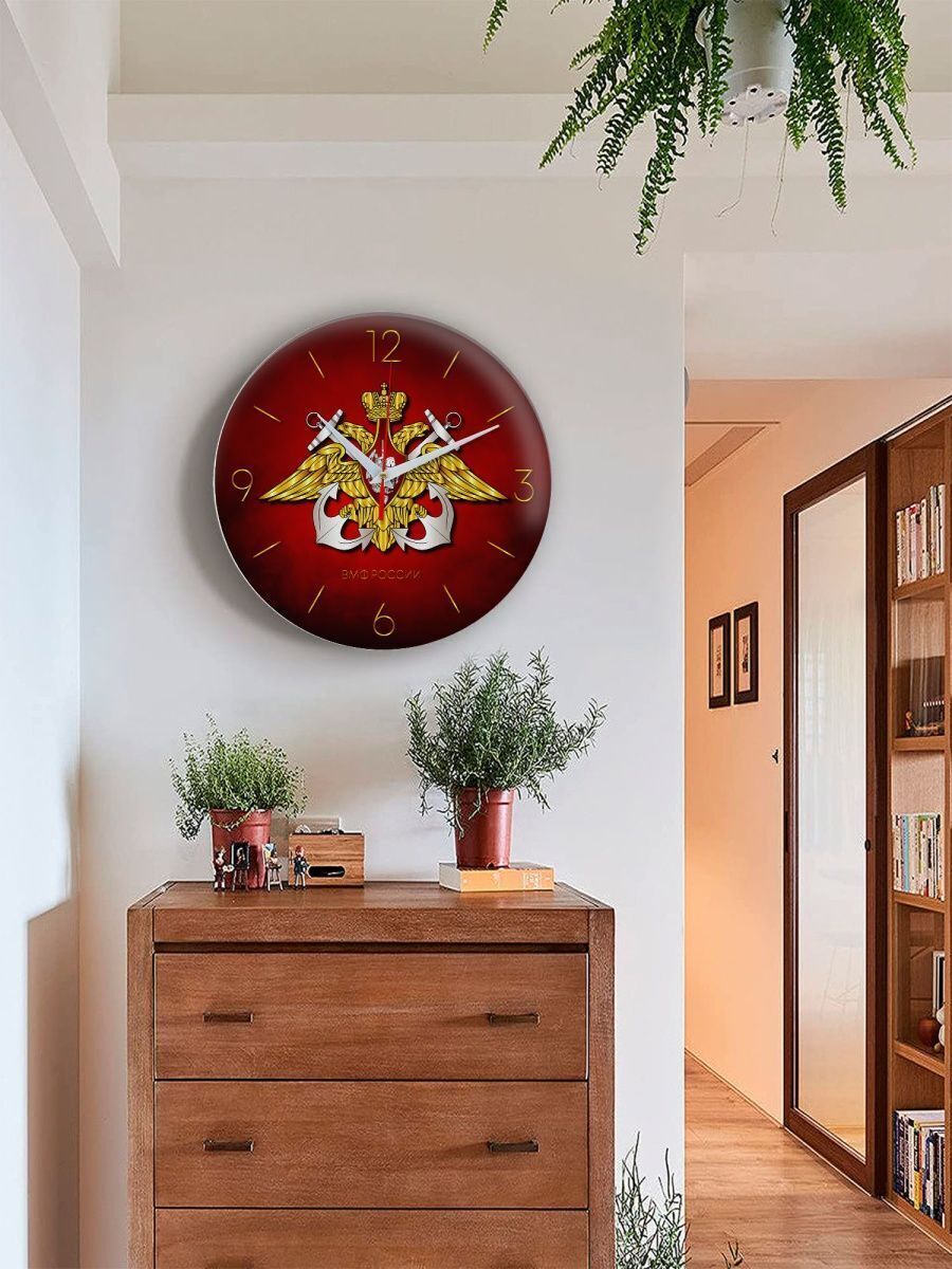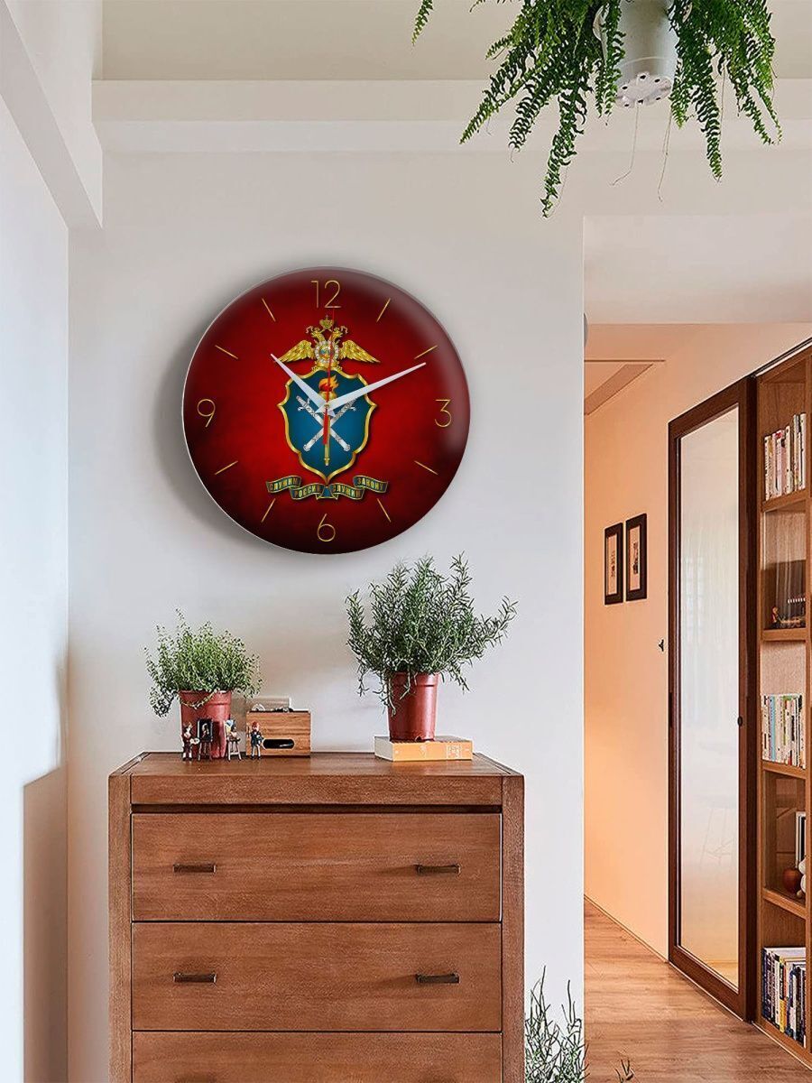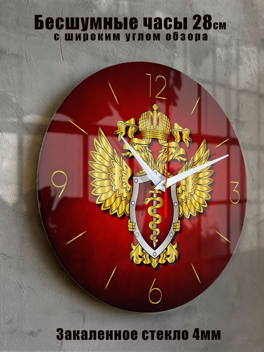 Часы с изображением эмблемы спецслужб и герба РФ, ведомственного герба. При производстве интерьерных часов с оригинальным дизайном, используется уникальная технология нанесения изображения ULTRA HD качества на стеклянную поверхность, благодаря чему изображение приобретает особую реалистичность и оптическую глубину цвета. Фотопечать наносится на обратную сторону закаленного стекла толщиной 4 мм, что дает насыщенный зрительный 3д эффект, а также защищает от прямого солнечного воздействия и выцветания сочной цветовой гаммы. Кварцевый механизм (не электронные с подсветкой) имеет плавный ход, часы бесшумные. Помимо выполнения своей основной функции – определения времени, настенные часы картина являются уникальным элементом декора, от которого во многом зависит внешний вид помещения. Часы на стену впишутся в любой современный стиль в качестве аксессуара и декора для интерьера дома и дачи, офиса (офисные), кабинет, в гостиной среди декоративных элементов. Необычные часы круглые комнатные станут оригинальным подарком на профессиональный праздник. Федеральная налоговая служба ФНС, Федеральная Таможенная служба ФТС, Полиция, МЧС, ФСБ, ФСИН, МВД Росии, Министерство Юстиции, Военная полиция, ОМОН, Судебный пристав, Следственный отдел, Уголовный розыск, Министерство обороны РФ, ФСО России, Прокуратура, СК РФ, ДПС России, Росгвардия, Фемида, Военно-морской флот России ВМФ, Воздушно-космические силы ВКС, Пограничные войска, Прокуратура, Следственный комитет, ГИБДД. Презент на день рождения начальнику мужчине, женщине, шефу, коллеге, брату, другу, подруге, папе, маме, мужу или любимому человеку на новый год, рождество, 23 февраля, 9 мая. Будьте уверены, такой сувенир на праздник все оценят по достоинству. Упакованы в защитный гофрокартон с дополнительными элементами для сохранности циферблата и стрелок.