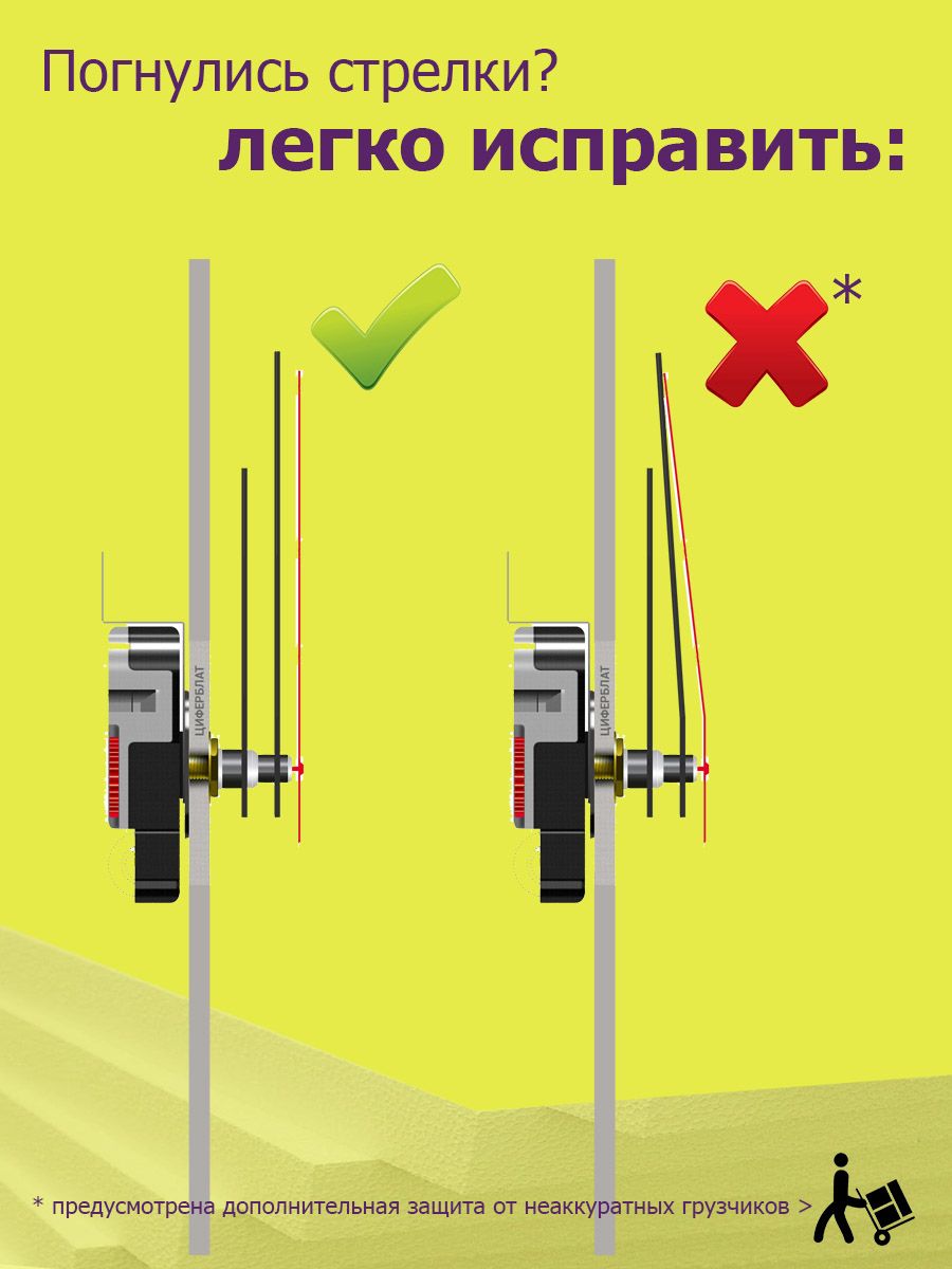 В часах установлен качественный надежный бесшумный механизм плавного хода (пр-во Тайвань). Подходят для размещения в спальне, детской комнате, рабочем кабинете - часы идут абсолютно бесшумно, не потревожат сон ночью и не будут раздражать тикающим звуком в дневное время.