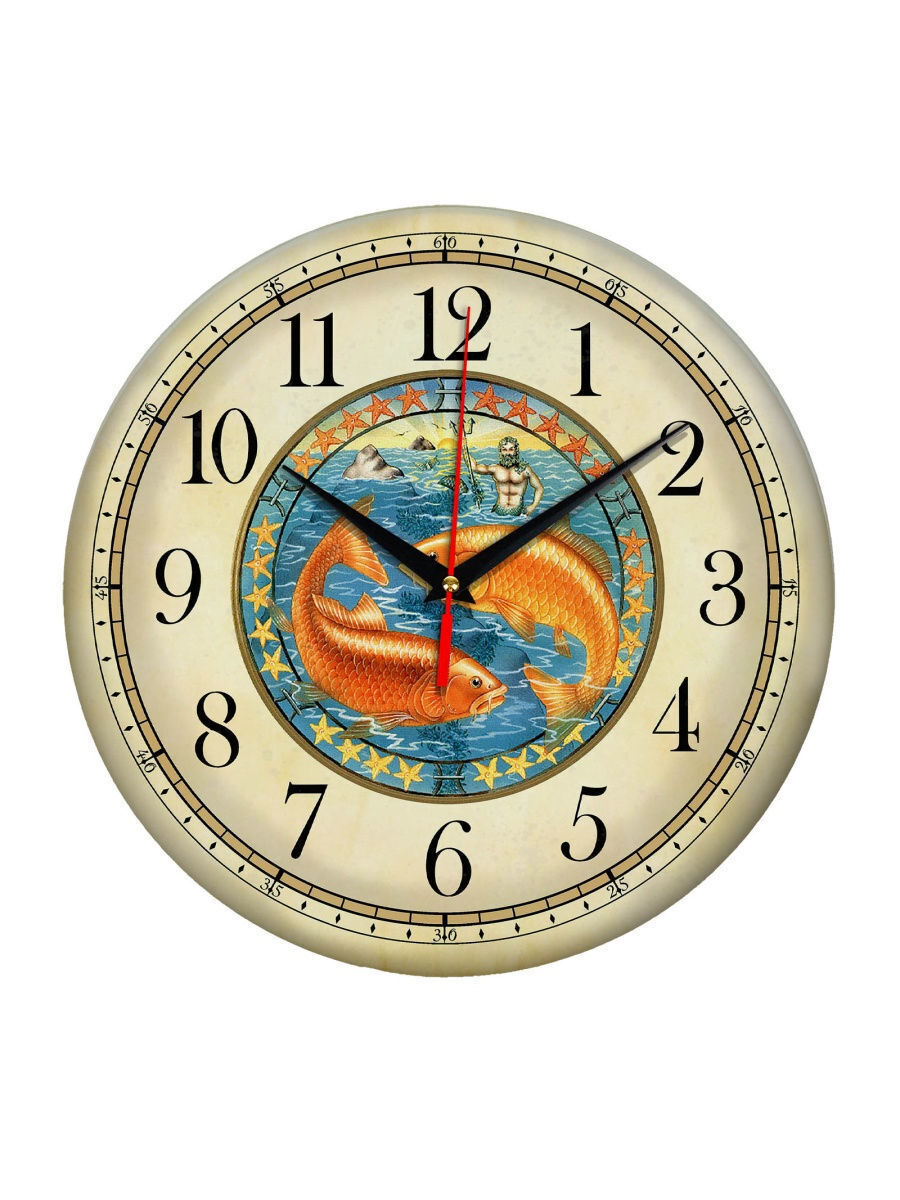 Часы настенные "Знаки зодиака в круге" Рыбы. Прекрасно подходят в качестве сувенира или подарка. Размер часов именем 28х28 см, стекло 4 мм, изображение ULTRA HD качества. Оно нанесено с обратной стороны. Стекло дает глубокий оптический эффект и защиту от выгорания ярких цветов. Такой стильный декор станет изюминкой любого интерьера, будь то спальня, каминный зал, кухня, прихожая, гостиная, ванная комната, и интересным интерьерным решением не только для дома и дачи (как комнатные или кухонные), но и для офисных помещений (офиса), детских центров, поликлиник. Изготовлены дизайнерские часики из закаленного стекла, а изображение нанесено с обратной стороны, что дает небольшой оптический 3д эффект. Стеклянные часы классические стрелочные, имеют кварцевый часовой механизм с плавным бесшумным ходом и секундной стрелкой, работают от пальчиковых батареек АА (не цифровые электронные). В коллекции бренда представлен широкий ассортимент часов российского производства от больших до маленьких размеров, в том числе подарочные, в белых, красных, серых, коричневых тонах, в стиле лофт, прованс, ретро, которые могут стать отличным подарком для мужчин, женщин и детей. Упакованы в защитный гофрокартон с дополнительными элементами для сохранности стеклянного циферблата.Дополнительным преимуществом покупки данных часов является то, что производитель находится в России, и, следовательно, гарантия на часы не является номинальной. Контакты производителя указаны в гарантийном талоне. При возникновении любых вопросов или сложностей, рады будем прийти на помощь. Упакованы в защитный гофрокартон с дополнительными элементами для сохранности стеклянного циферблата.