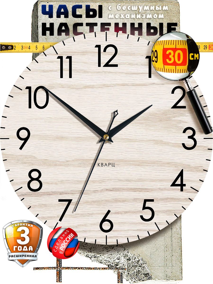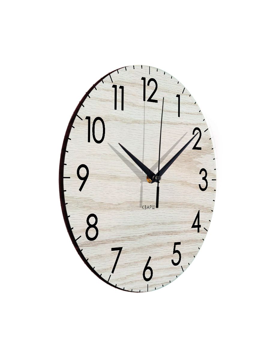Эти настенные часы из МДФ с принтом гарантирующий одинаковую текстуру шпона дуба станут стильным акцентом в любом интерьере. Диаметр 30 см — оптимальный размер для кухни, спальни, гостиной или офиса и дачи. Основание выполнено из МДФ, кашированным принтом дуба, что придаёт часам фактуру и благородный оттенок настоящего дерева.