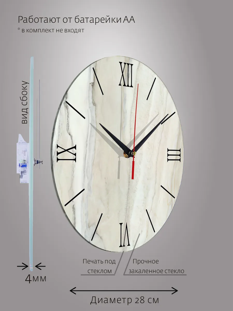 Настенные часы с бесшумным кварцевым механизмом и классическим дизайном – стильное украшение для дома или офиса. Четкий минималистичный циферблат с тонкими стрелками обеспечивает удобное считывание времени даже издалека. Диаметр 28 см идеально подходит для кухни, гостиной, кабинета или спальни. Точный ход благодаря трём стрелкам с плавным ходом (часовая, минутная, секундная) и кварцевому механизму. Работают от 1 батарейки типа AA (в комплект не входит). Компактные и универсальные, эти часы легко впишутся в любой интерьер, добавляя ему элегантности и функциональности. Материал циферблата закаленное стекло.