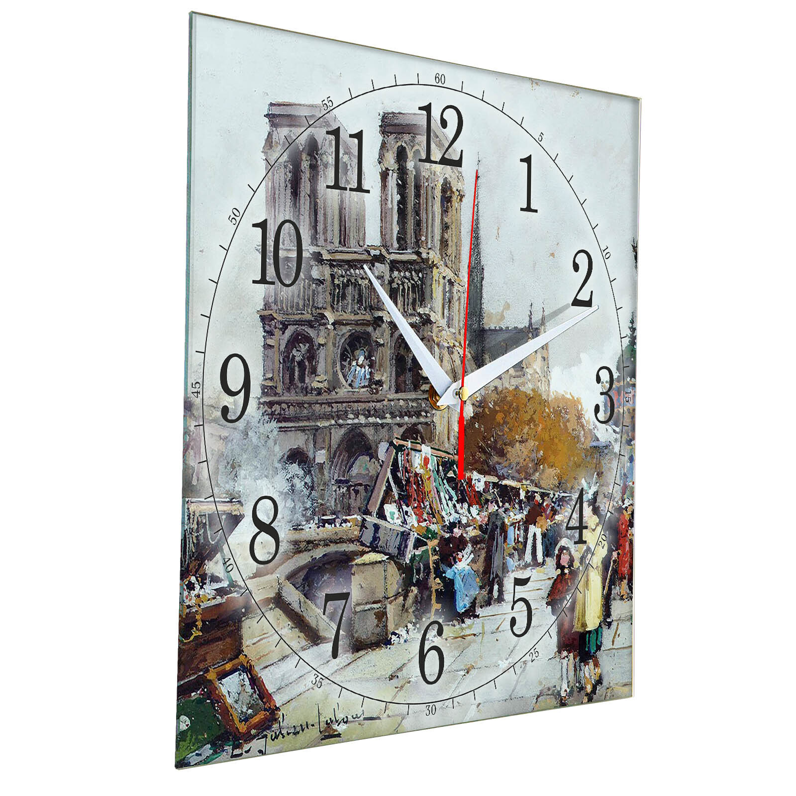 Часы настенные Париж. Часы с удивительным эффектом оптической глубины напечатаны на стекле в ULTRA HD качестве с защитным покрытием от Ультрафиолета. Толщина стекла 4 мм, кварцевый механизм с плавным ходом работает от пальчиковой батарейки (АА), упаковка - белая коробка.