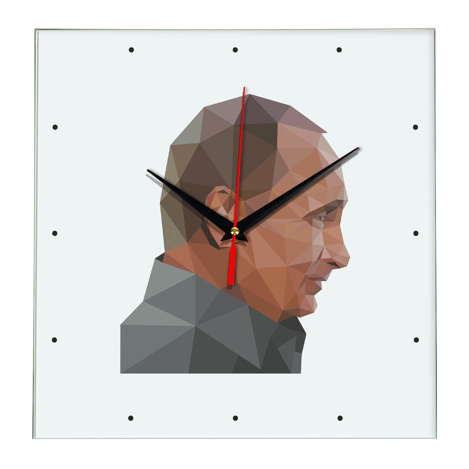 Часы настенные "Вождь Путин". Часы с удивительным эффектом оптической глубины напечатаны на стекле в ULTRA HD качестве с защитным покрытием от Ультрафиолета. Толщина стекла 4 мм, кварцевый механизм с плавным ходом работает от пальчиковой батарейки (АА), упаковка - белая коробка.