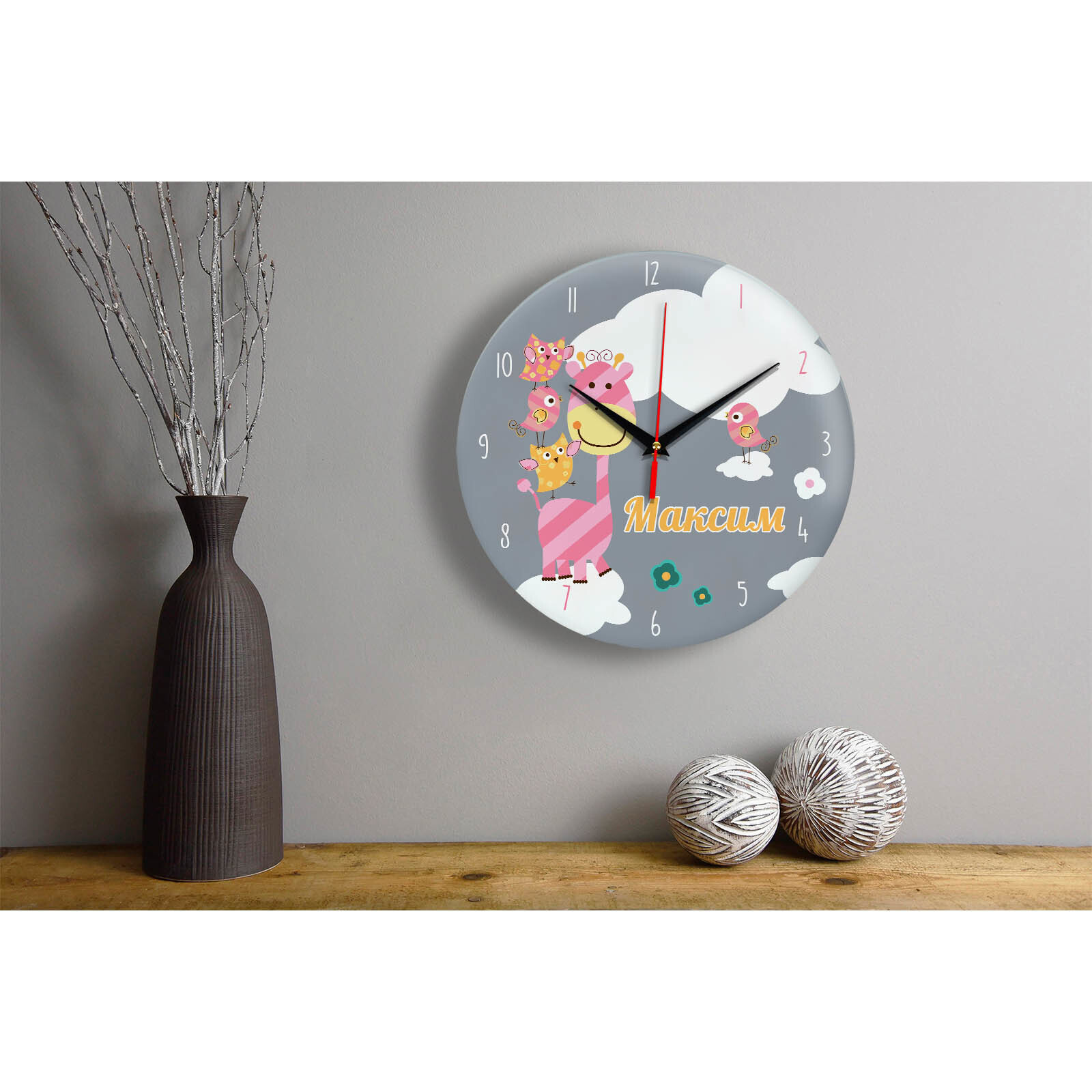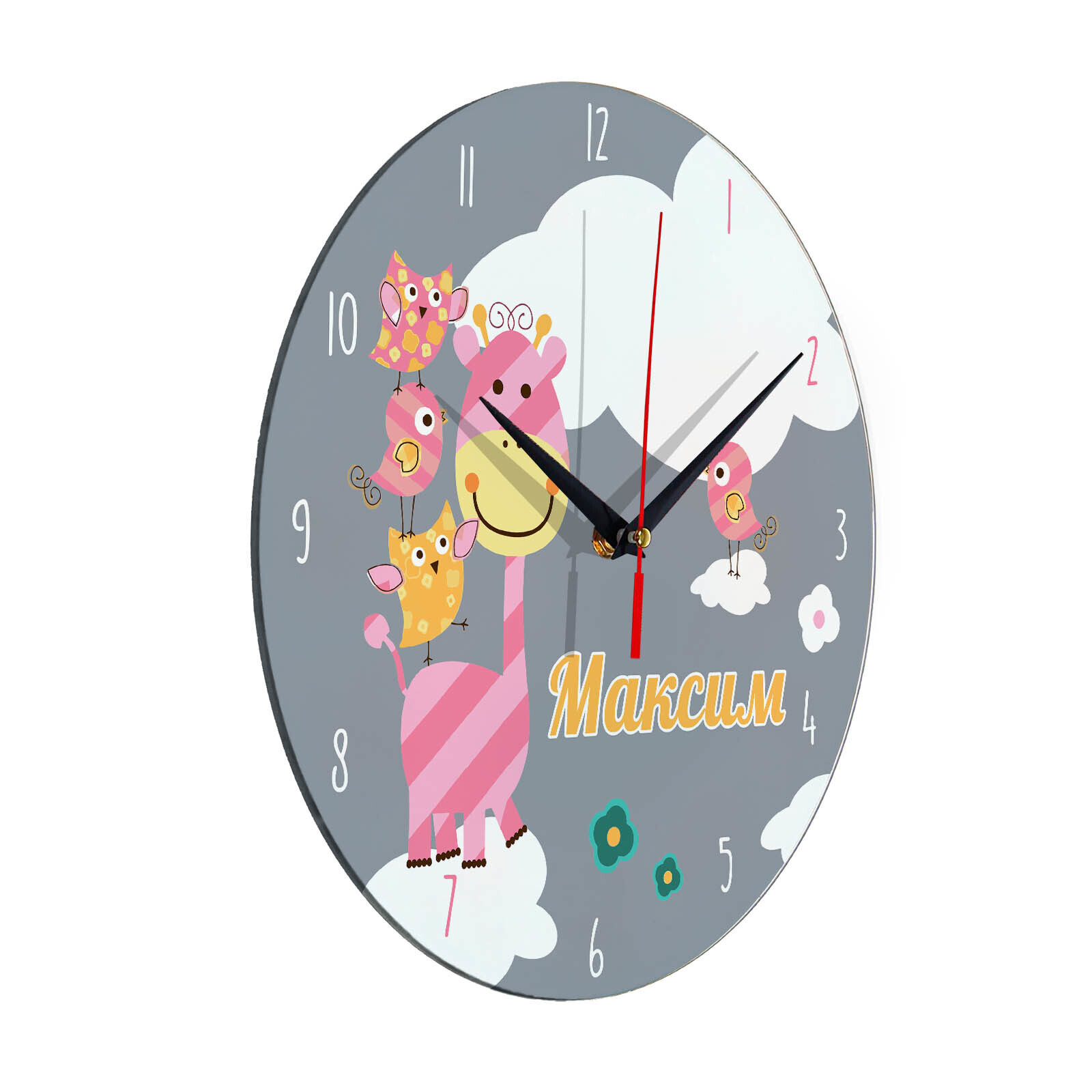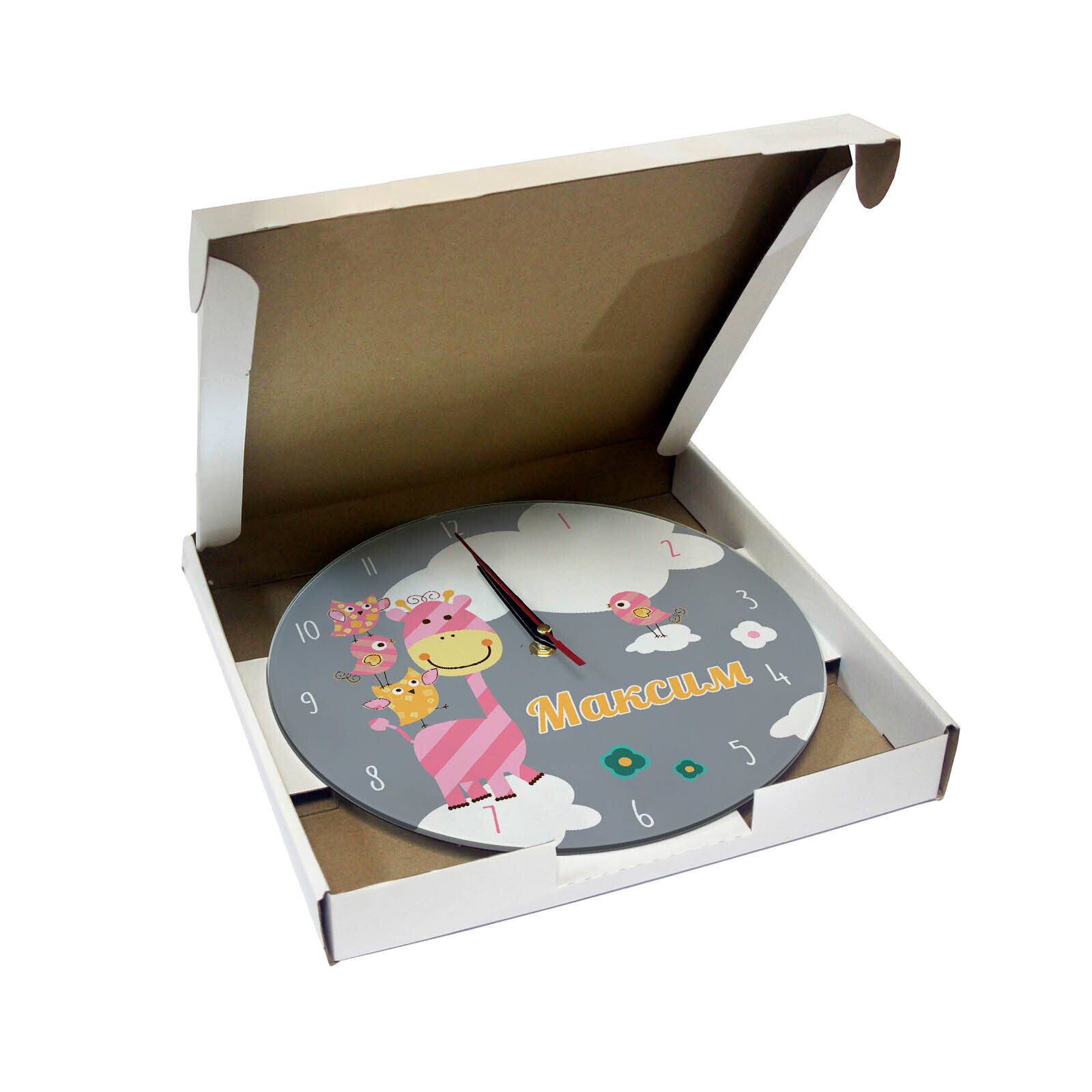 Часы подарок с именем "Максим" размер часов 28х28 см, стекло 4 мм, изображение печатаем ULTRA HD качества. Оно нанесено с обратной стороны. Стекло дает глубокий оптический эффект и защиту от выгорания ярких цветов. Механизм кварцевый с плавным ходом работает от пальчиковой батарейки АА. Стекло закалено и покрыто с обратной стороны защитной пленкой для защиты изображения и для безопасности. Упаковка из белого гофрокартона с дополнительными элементами для сохранности стеклянного циферблата. Размер упаковки: 0,3х0,3х0,04 м , масса 0,8 кг.