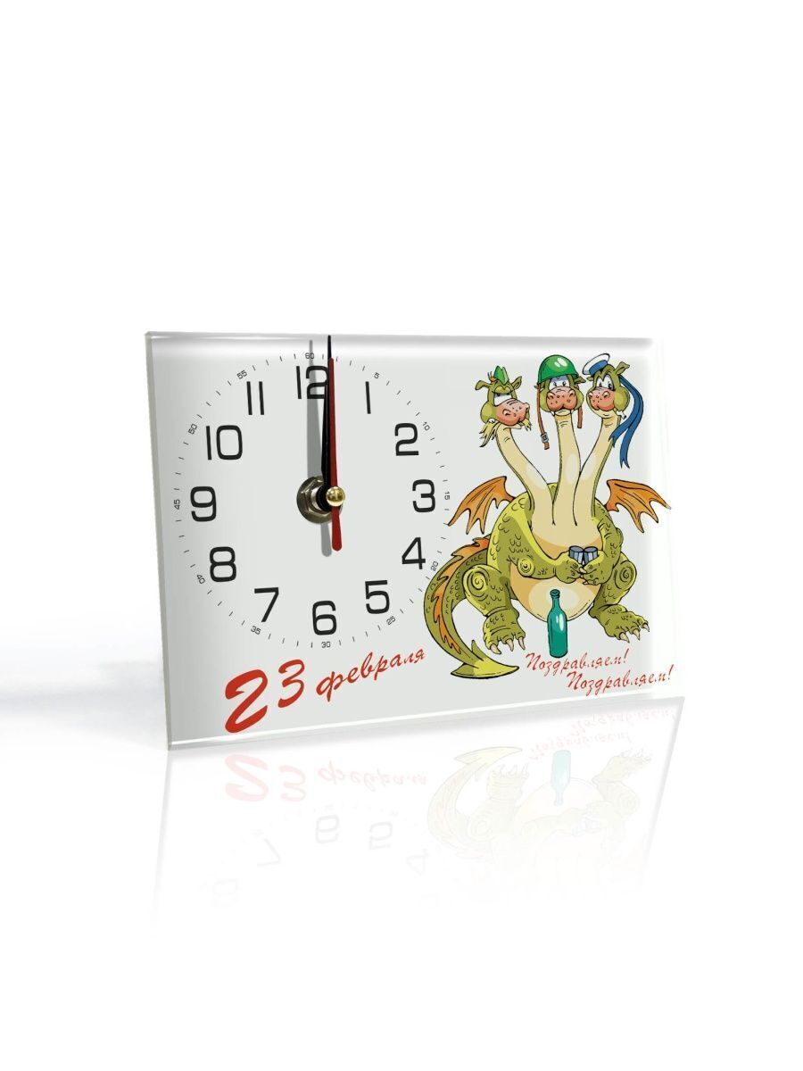 Часы "С 23 февраля от Горыныча" Часы для все военных и просто мужиков. размер часов 12х18 см, стекло 4 мм, изображение печатаем ULTRA HD качества. Оно нанесено с обратной стороны. Стекло дает глубокий оптический эффект и защиту от выгорания ярких цветов. Механизм кварцевый с плавным ходом работает от пальчиковой батарейки АА. Стекло закалено и покрыто с обратной стороны защитной пленкой для защиты изображения и для безопасности. Упаковка из белого гофрокартона с дополнительными элементами для сохранности стеклянного циферблата. Размер упаковки: 0,19х0,13х0,04 м , масса 0,4 кг.