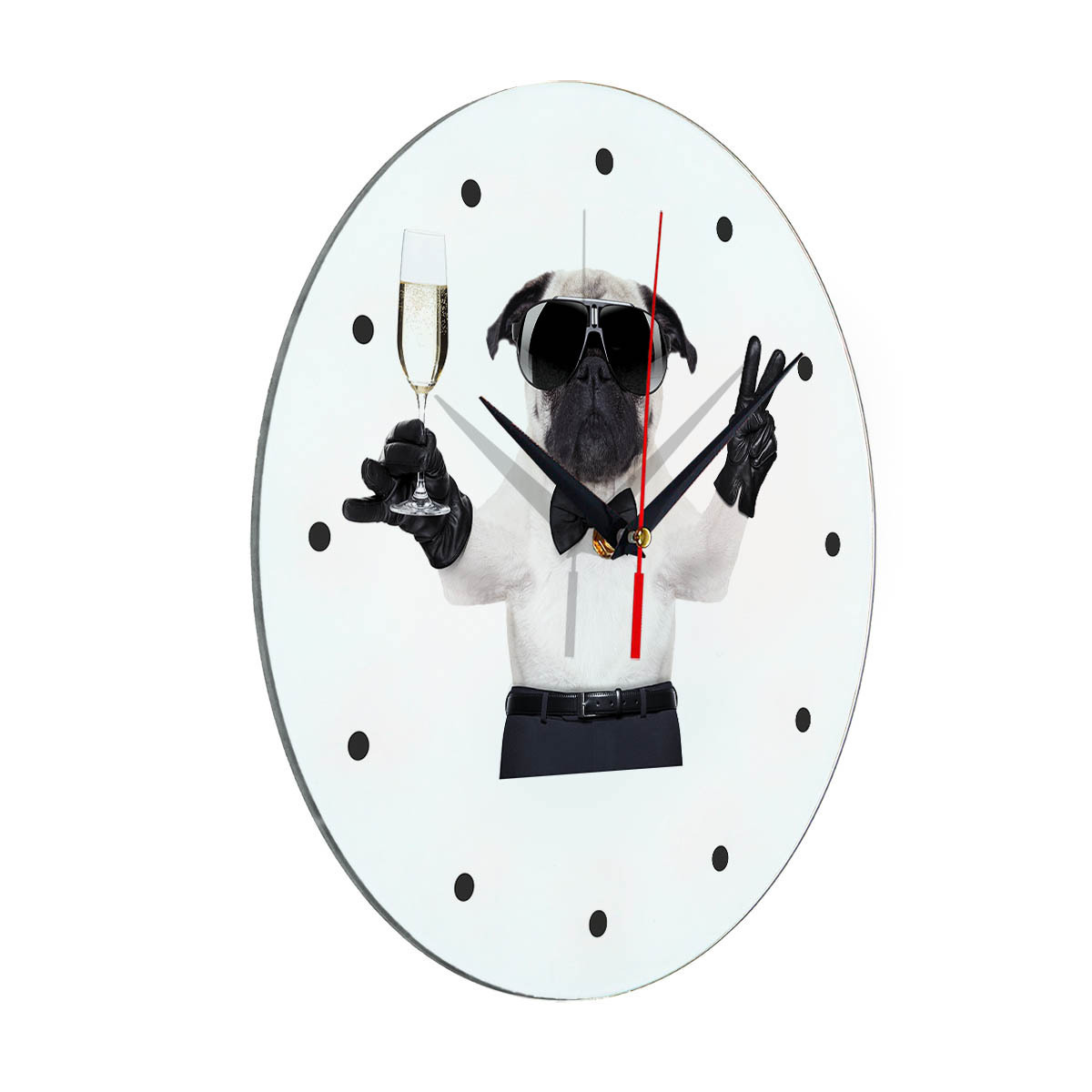 Настенные часы круглые стеклянные "Собаки: Пес с бокалом", размер часов 28х28 см, стекло 4 мм, изображение печатаем ULTRA HD качества. Оно нанесено с обратной стороны. Стекло дает глубокий оптический эффект и защиту от выгорания ярких цветов. Механизм кварцевый с плавным ходом работает от пальчиковой батарейки АА. Стекло закалено и покрыто с обратной стороны защитной пленкой для защиты изображения и для безопасности. Упаковка из белого гофрокартона с дополнительными элементами для сохранности стеклянного циферблата. Размер упаковки: 0,3х0,3х0,04 м , масса 0,8 кг.
