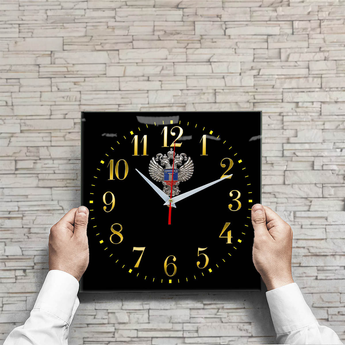 Настенные часы "emblema minstroya 02 35" размер часов 28х28 см, закаленное стекло 4 мм, изображение печатаем ULTRA HD качества. Оно нанесено с обратной стороны. Стекло дает глубокий оптический эффект и защиту от выгорания ярких цветов. Механизм кварцевый с плавным ходом работает от пальчиковой батарейки АА. Стекло закалено и покрыто с обратной стороны защитной пленкой для защиты изображения и для безопасности. Упаковка из белого гофрокартона с дополнительными элементами для сохранности стеклянного циферблата. Размер упаковки: 0,3х0,3х0,04 м , масса 0,8 кг.