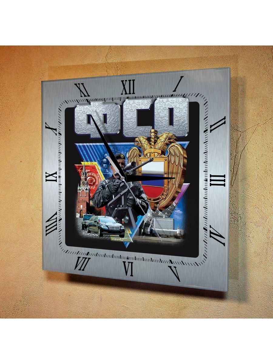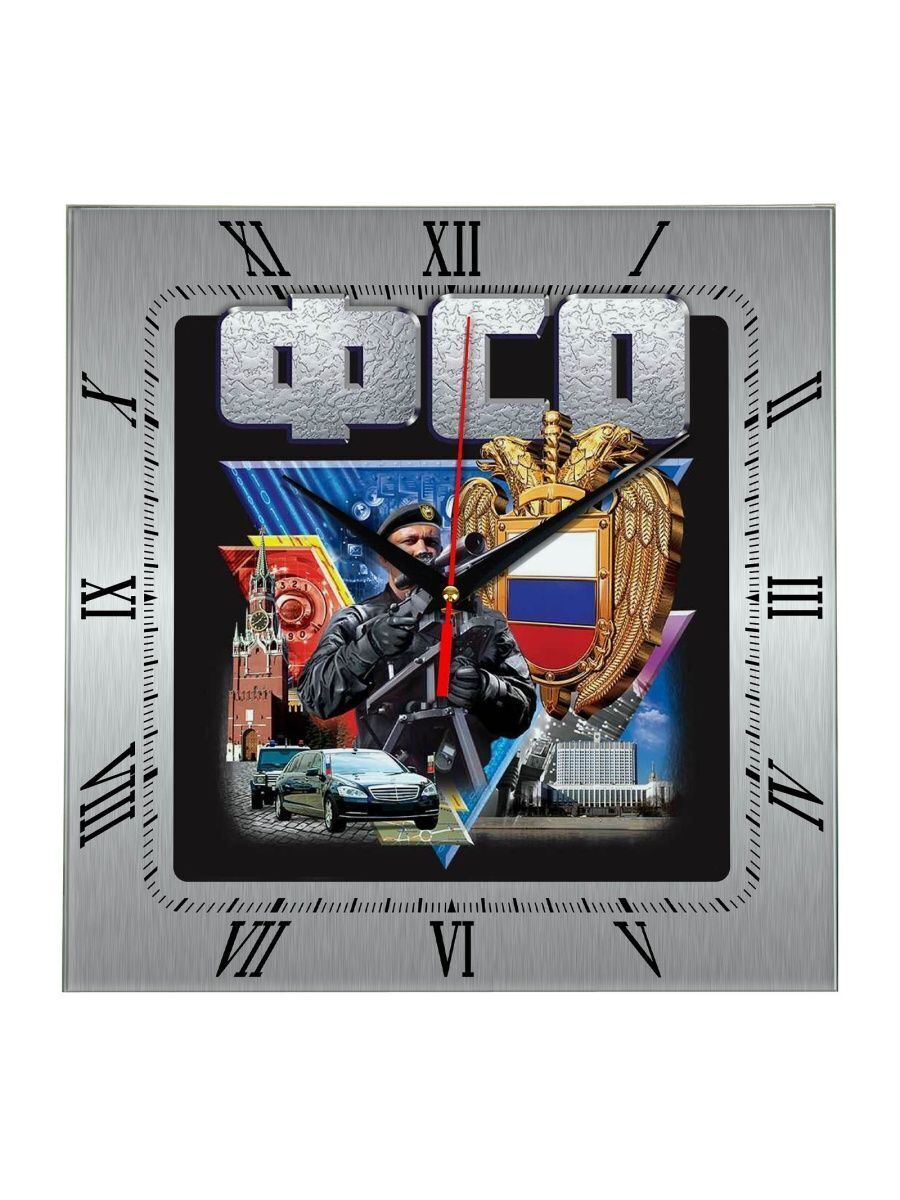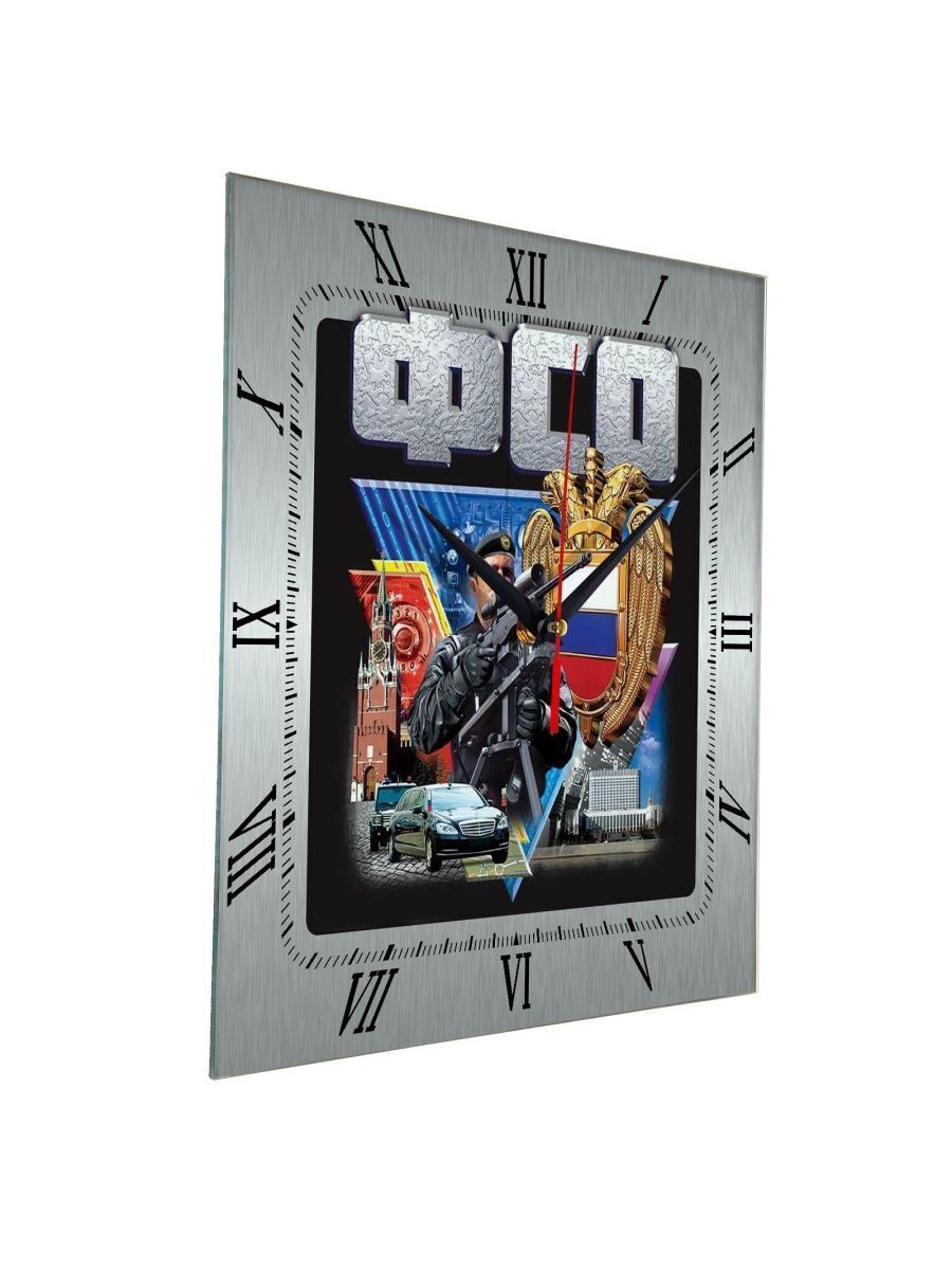Самые крутые часы с символикой ФСО ждут Вас! В наличии множество моделей с символикой и достопримечательностями. Выбирайте идеальные часы себе уже сейчас! Характеристики: стекло марки М1 толщиной 4 мм. Стандартные размеры: 280х280 мм, механизм бесшумный работает от батарейки типа АА.
