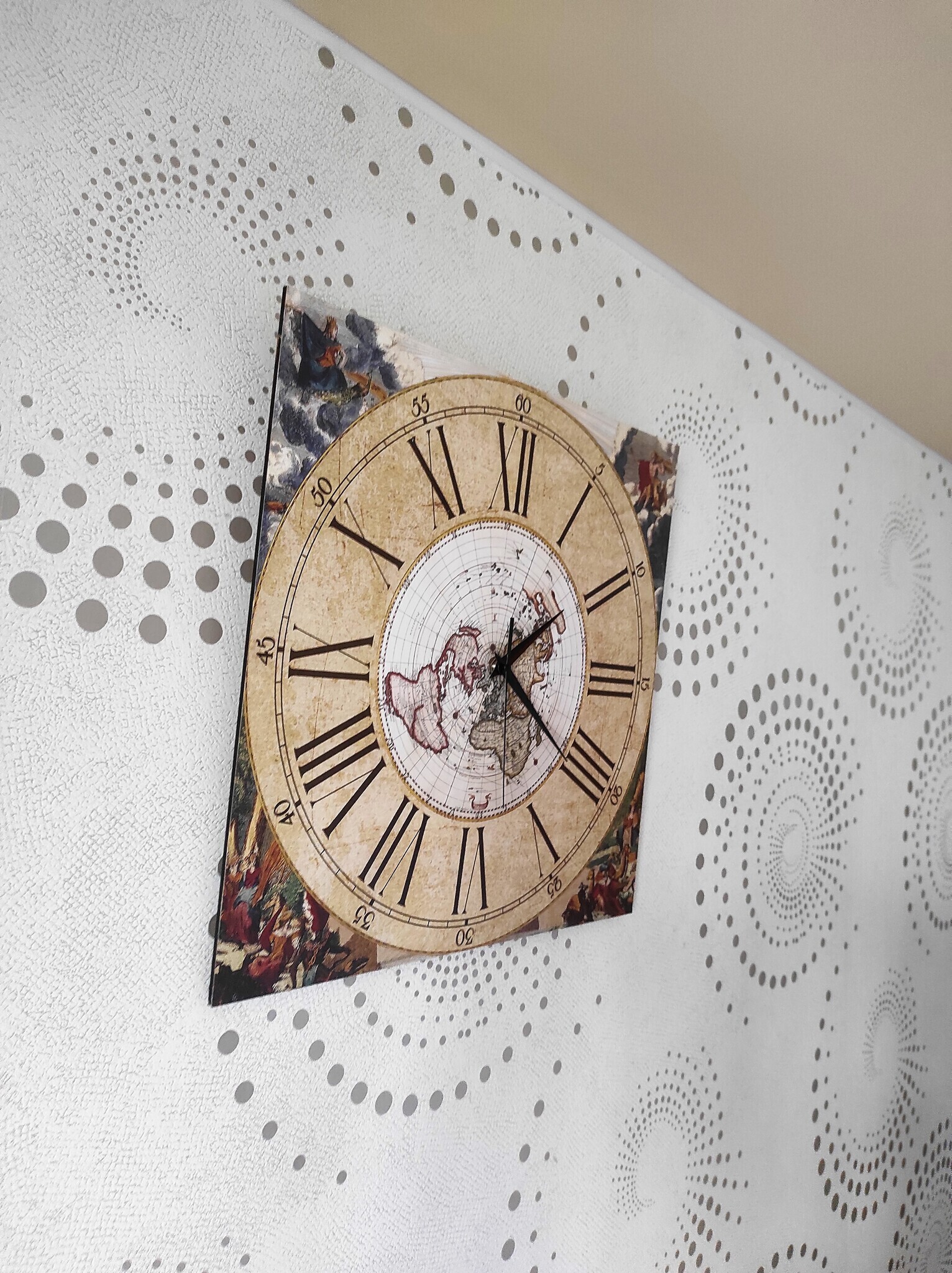 Настенные часы диаметром 42 см, выполнены из МДФ. Кварцевый механизм имеет плавный ход и работает от одной батарейки типа АА. Батарейка входит в комплект. Сзади имеется удобная петелька для крепления на стену. Часы отлично украсят интерьер гостиной, спальни, офиса, кухни или столовой. А также послужат отличным подарком на любой праздник. Оригинальный подарок для женщины, для мужчины. При помощи подставки для тарелок часы можно установить на полку и они станут большими настольными часами. В коллекции бренда представлен широкий ассортимент часов российского производства от больших до маленьких размеров, в том числе подарочные, в белых, красных, серых, коричневых, голубых тонах, с разноцветным рисунком, в стиле лофт, винтажные часы, прованс, ретро, сканди, минимализм, классический. Упакованы в защитный гофрокартон с дополнительными элементами для сохранности циферблата и стрелок.
