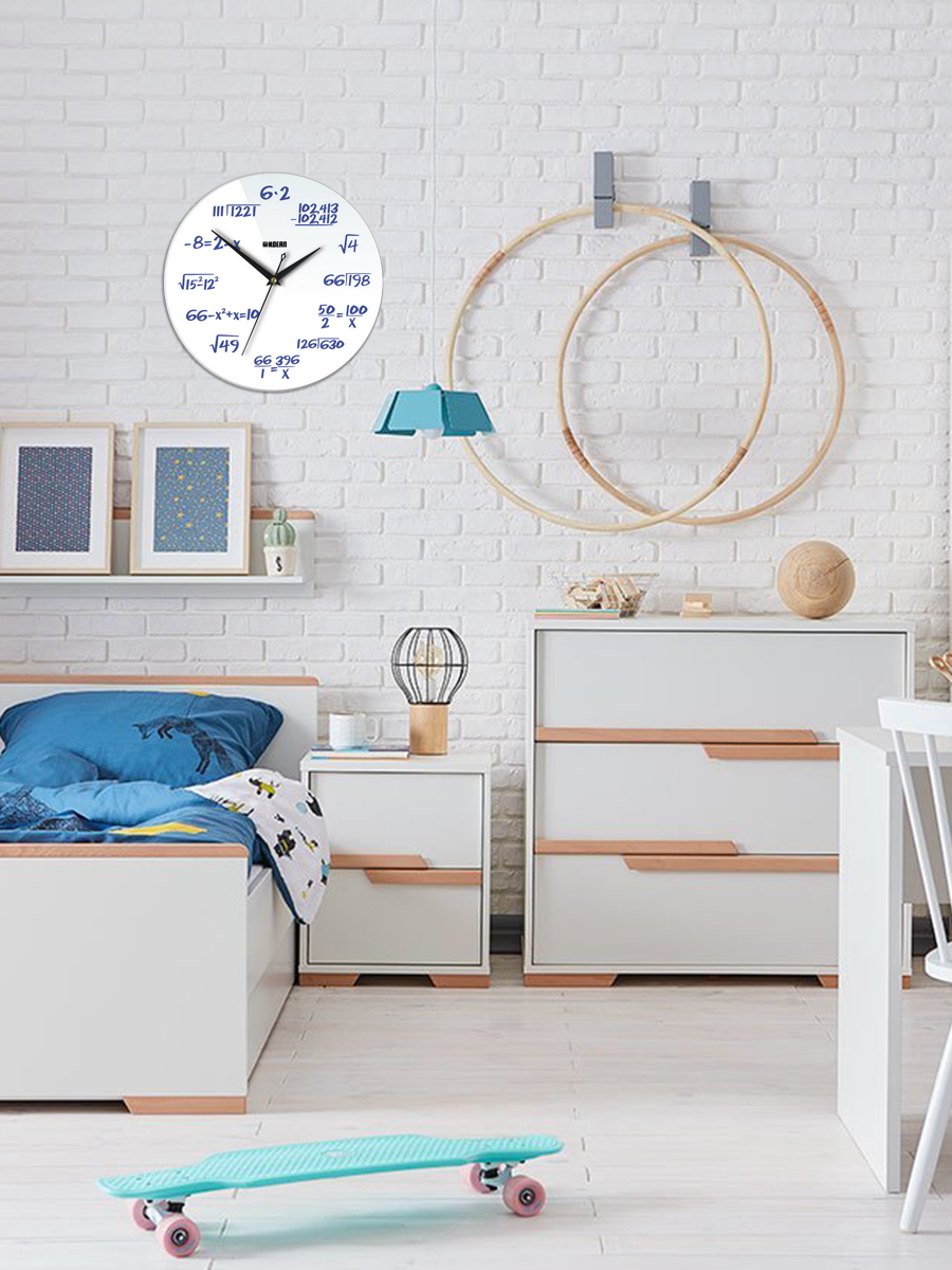 Настенные часы диаметром 28 см выполнены из стекла и оснащены кварцевым бесшумным механизмом. Часы отлично украсят интерьер детской комнаты.