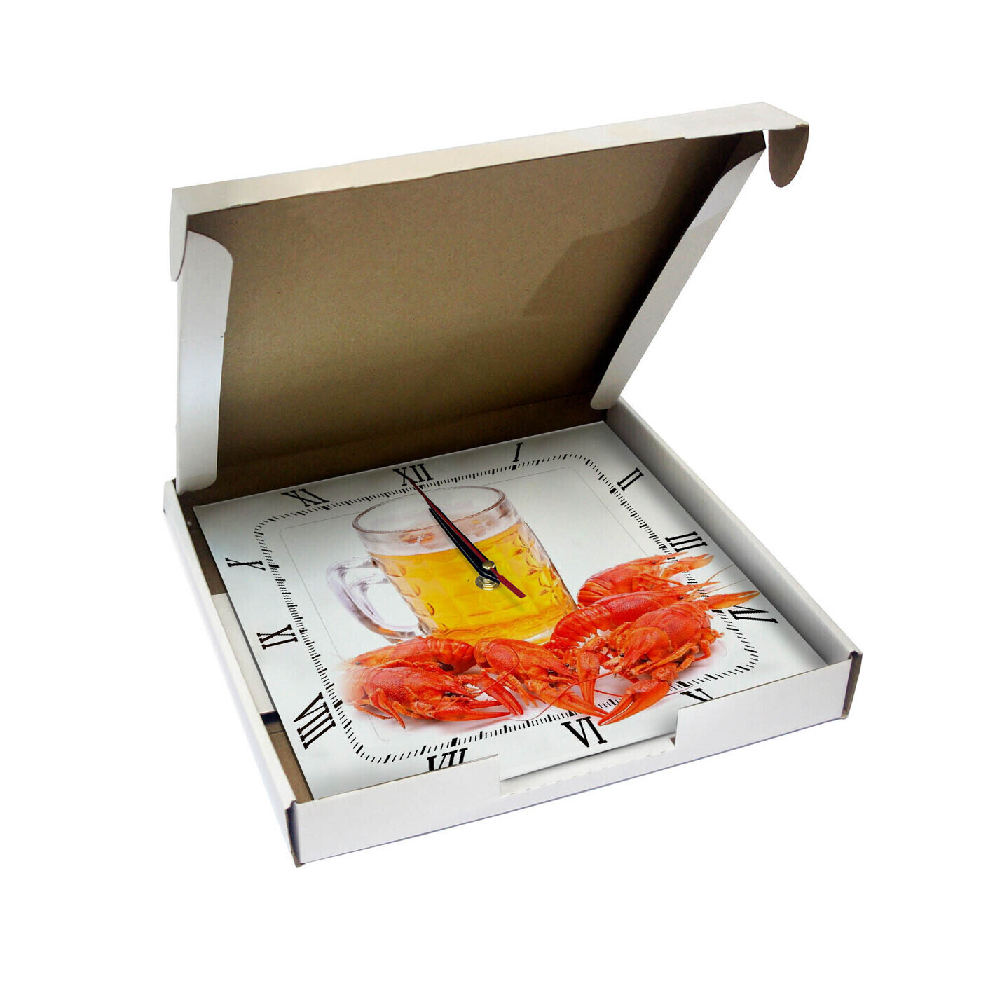 Для любителей пива хороший и практичный подарок. Прикольный принт на часах с пивной тематикой хорошо оценят друзья. Пиво хороший подарок и в жидком виде и на часах. Мы разработали пивные сувениры универсально для любого повода. Высокое качество печати и бесшумный механизм отлично впишутся и украсят любой интерьер.Характеристики: Часы выполнены из закаленного стекла толщиной 4 мм с нанесённым изображением с обратной стороны, что дает глубокий оптический эффект и защищает изображение. Размер настенных часов 28х28 см. В качестве элементов питания используются батарейка AA, но она не входит в комплект.