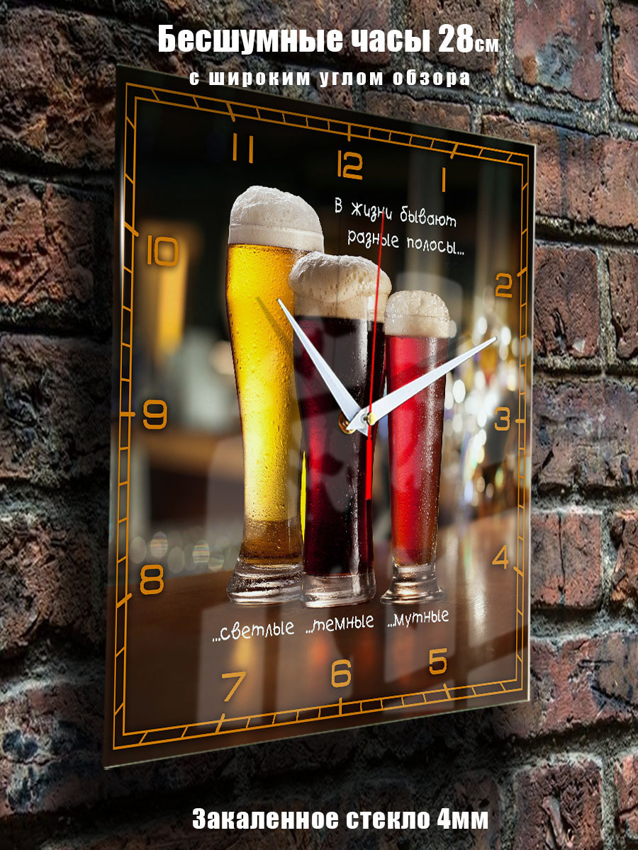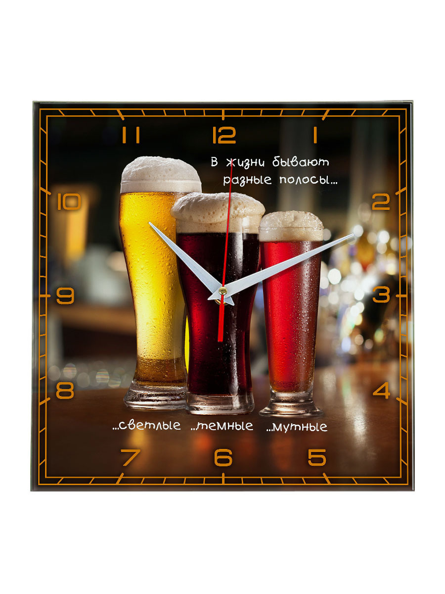 Для любителей пива хороший и практичный подарок. Прикольный принт на часах с пивной тематикой хорошо оценят друзья. Пиво – хороший подарок и в жидком виде и на часах. Мы разработали пивные сувениры универсально для любого повода. Высокое качество печати и бесшумный механизм отлично впишутся и украсят любой интерьер.