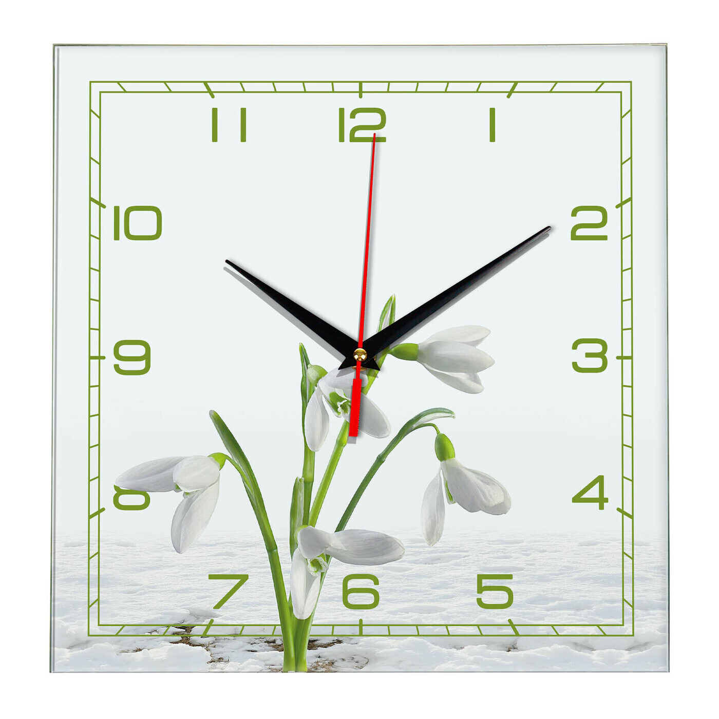 Серия Весна создана для весеннего настроения и весенних праздников 8 марта и 1 мая. Тепло весны, пробуждение природы, цветение отобразили на циферблате. Настенные часы из стекла. Размер 280х280 мм. Часы с удивительным эффектом оптической глубины напечатаны на стекле в ULTRA HD качестве с защитным покрытием от Ультрафиолета. Толщина стекла 4 мм, кварцевый механизм с плавным ходом работает от пальчиковой батарейки (АА), упаковка - белая коробка.