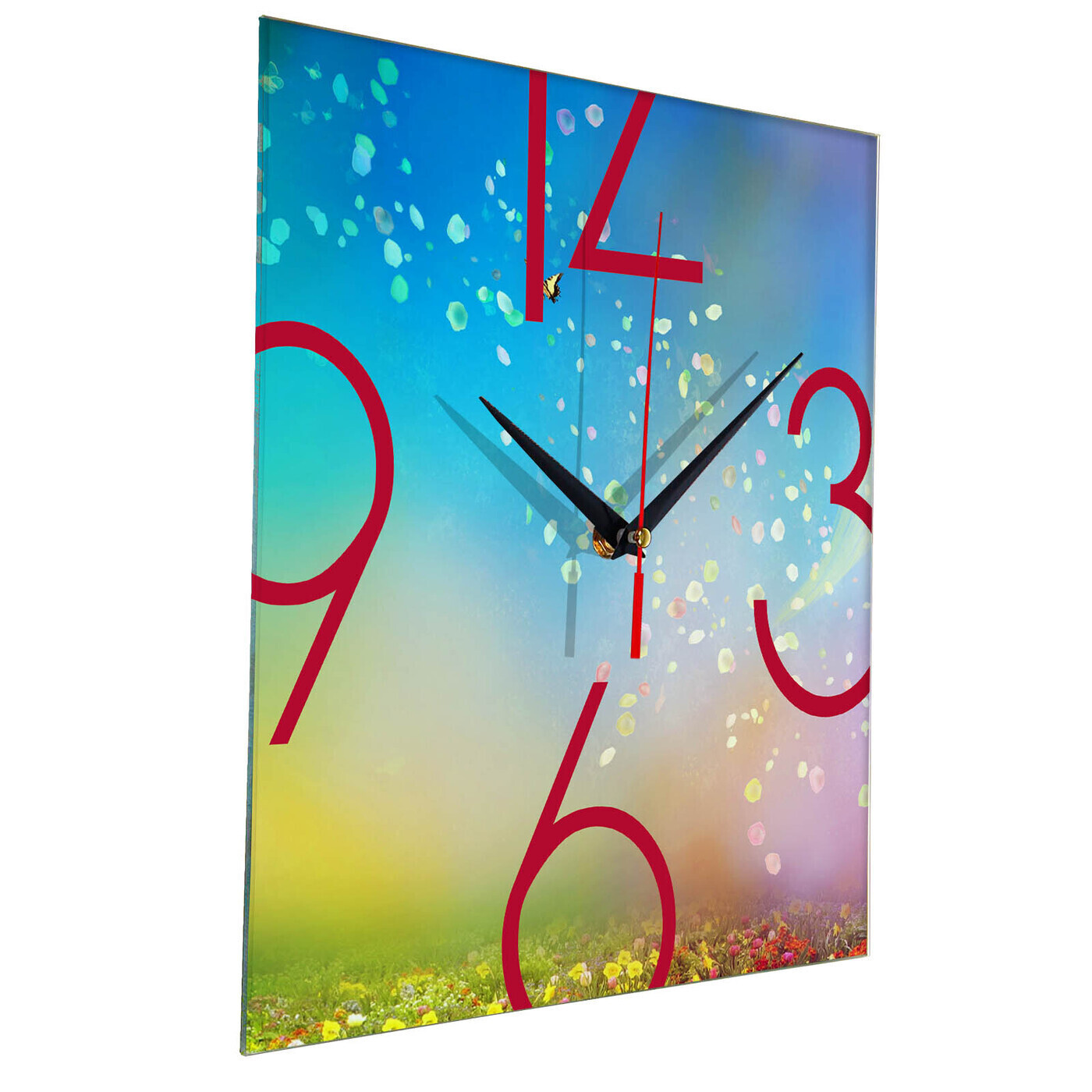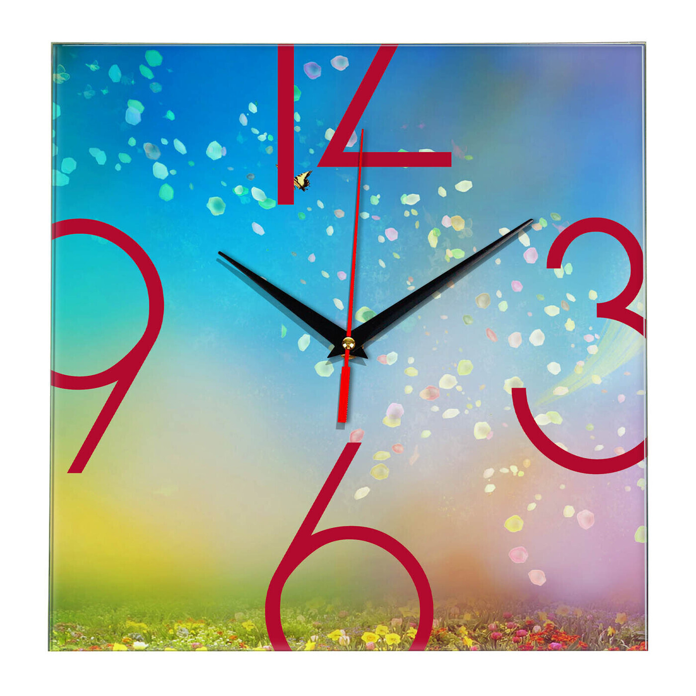 Серия Весна создана для весеннего настроения и весенних праздников 8 марта и 1 мая. Тепло весны, пробуждение природы, цветение отобразили на циферблате. Настенные часы из стекла. Размер 280х280 мм. Часы с удивительным эффектом оптической глубины напечатаны на стекле в ULTRA HD качестве с защитным покрытием от Ультрафиолета. Толщина стекла 4 мм, кварцевый механизм с плавным ходом работает от пальчиковой батарейки (АА), упаковка - белая коробка.