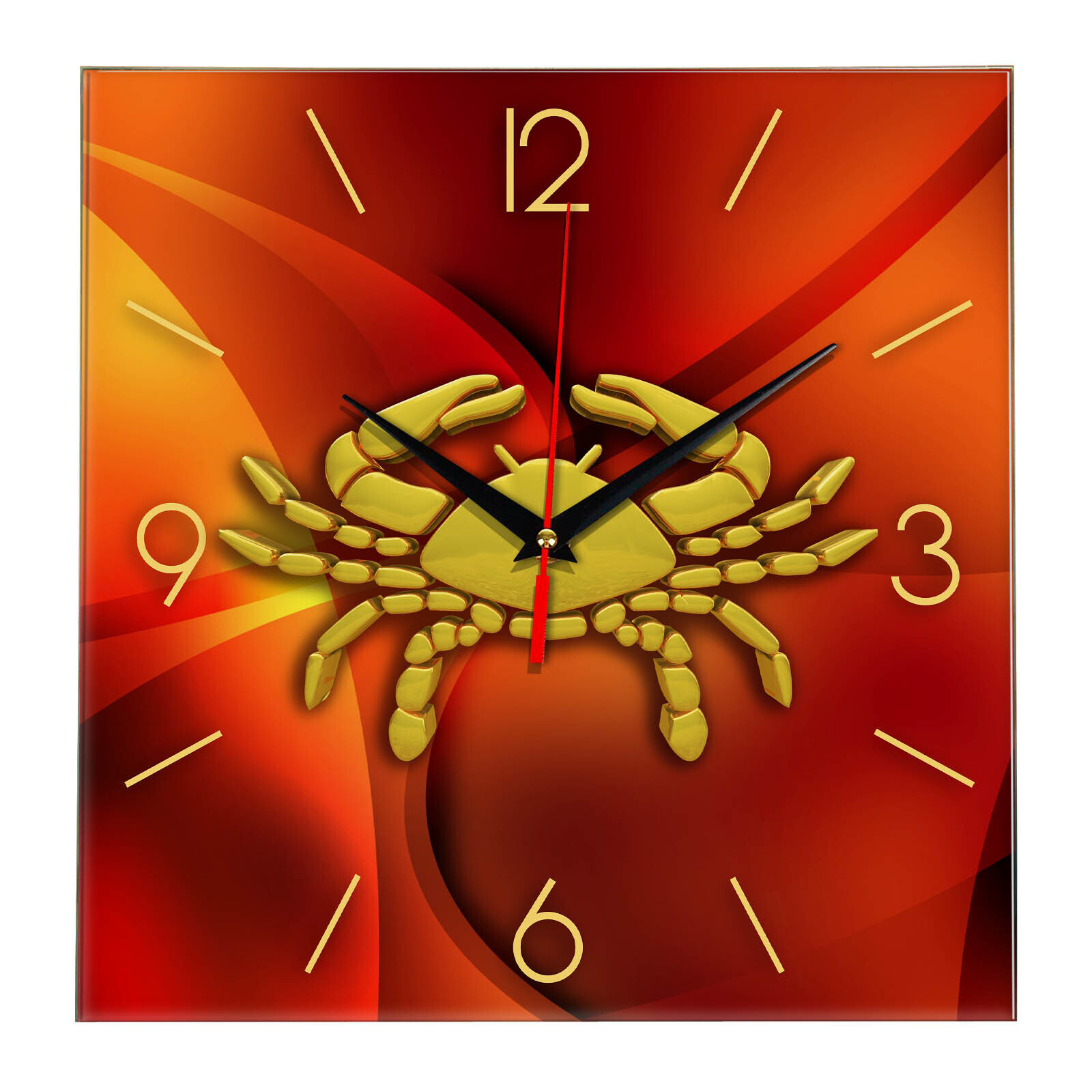 Часы настенные "Знаки зодиака" Золотой Рак 2. Прекрасно подходят в качестве сувенира или подарка. Размер часов именем 28х28 см, стекло 4 мм, изображение ULTRA HD качества. Оно нанесено с обратной стороны. Стекло дает глубокий оптический эффект и защиту от выгорания ярких цветов. Механизм кварцевый с плавным ходом работает от пальчиковой батарейки АА. Стекло закалено и покрыто с обратной стороны защитной пленкой для защиты изображения и для безопасности. Упаковка из белого гофрокартона с дополнительными элементами для сохранности стеклянного циферблата. Размер упаковки: 0,3х0,3х0,04 м , масса 0,8 кг.
