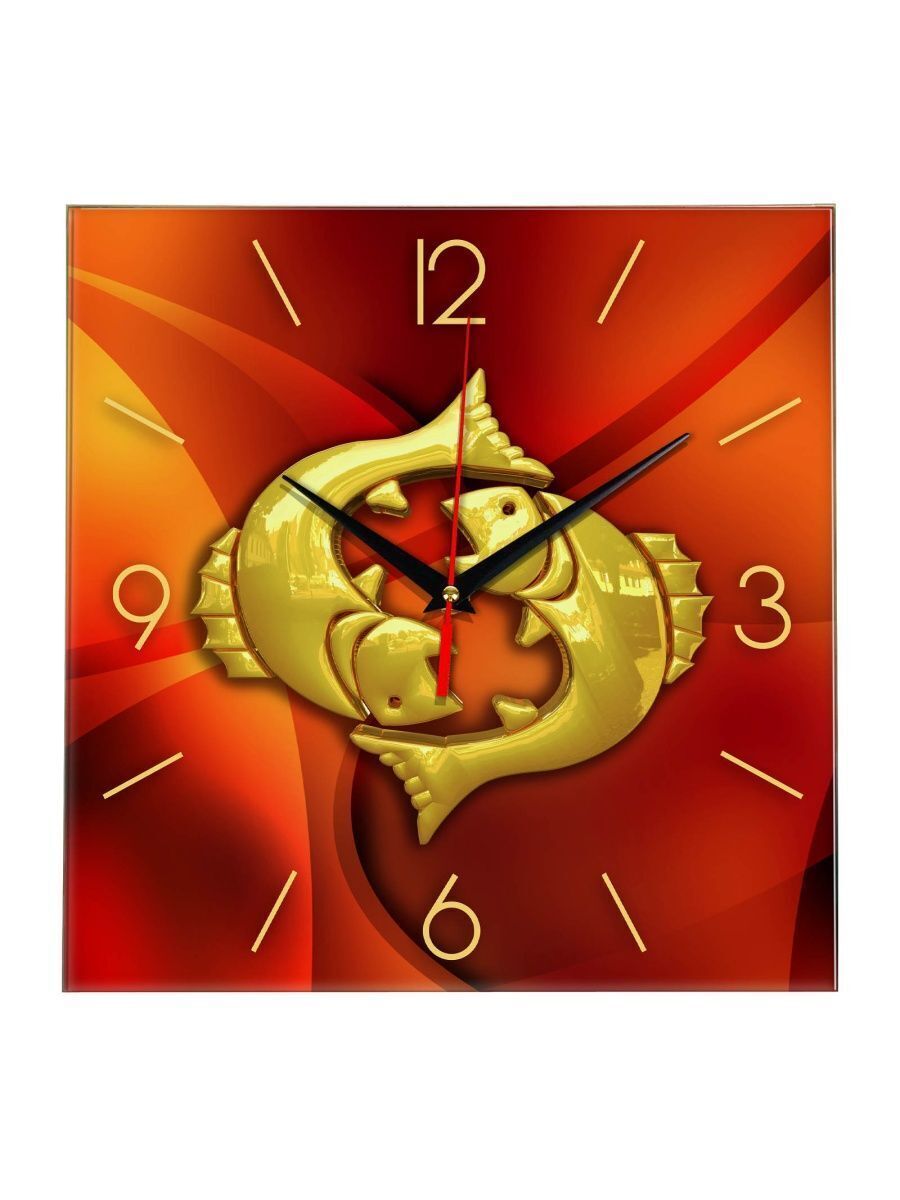 Часы настенные "Знаки зодиака" Золотые Рыбы 2. Прекрасно подходят в качестве сувенира или подарка. Размер часов именем 28х28 см, стекло 4 мм, изображение ULTRA HD качества. Оно нанесено с обратной стороны. Стекло дает глубокий оптический эффект и защиту от выгорания ярких цветов. Механизм кварцевый с плавным ходом работает от пальчиковой батарейки АА. Стекло закалено и покрыто с обратной стороны защитной пленкой для защиты изображения и для безопасности. Упаковка из белого гофрокартона с дополнительными элементами для сохранности стеклянного циферблата. Размер упаковки: 0,3х0,3х0,04 м , масса 0,8 кг.