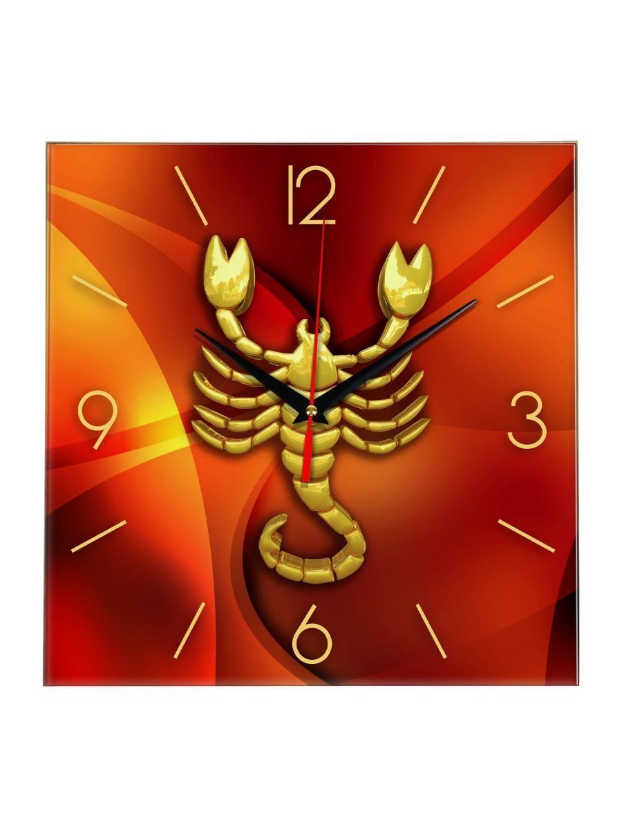 Часы настенные "Знаки зодиака" Золотой Скорпион 2. Прекрасно подходят в качестве сувенира или подарка. Размер часов именем 28х28 см, стекло 4 мм, изображение ULTRA HD качества. Оно нанесено с обратной стороны. Стекло дает глубокий оптический эффект и защиту от выгорания ярких цветов. Механизм кварцевый с плавным ходом работает от пальчиковой батарейки АА. Стекло закалено и покрыто с обратной стороны защитной пленкой для защиты изображения и для безопасности. Упаковка из белого гофрокартона с дополнительными элементами для сохранности стеклянного циферблата. Размер упаковки: 0,3х0,3х0,04 м , масса 0,8 кг.