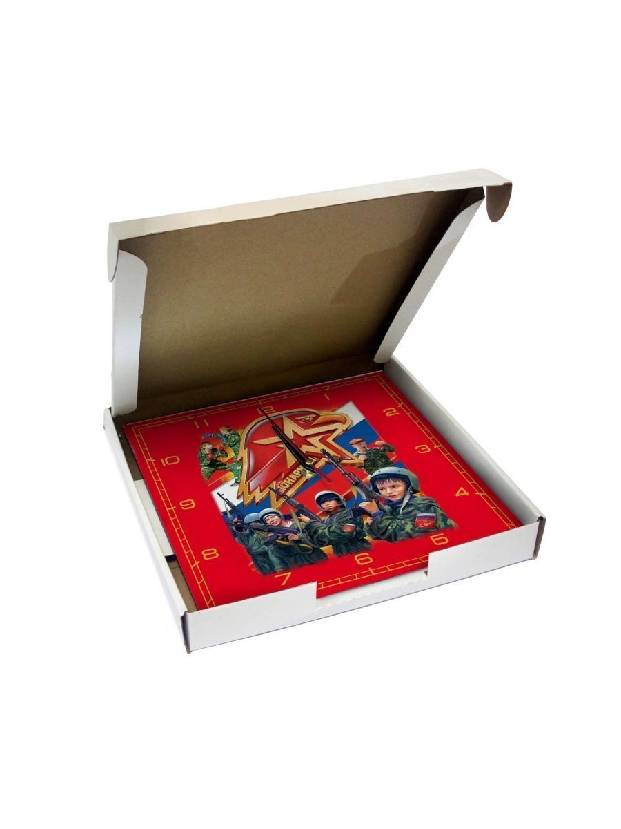 Сувенир и подарок часы unarmiya 02 размер часов с именем 28х28 см, стекло 4 мм, изображение печатаем ULTRA HD качества. Оно нанесено с обратной стороны. Стекло дает глубокий оптический эффект и защиту от выгорания ярких цветов. Механизм кварцевый с плавным ходом работает от пальчиковой батарейки АА. Стекло закалено и покрыто с обратной стороны защитной пленкой для защиты изображения и для безопасности. Упаковка из белого гофрокартона с дополнительными элементами для сохранности стеклянного циферблата. Размер упаковки: 0,3х0,3х0,04 м , масса 0,8 кг.