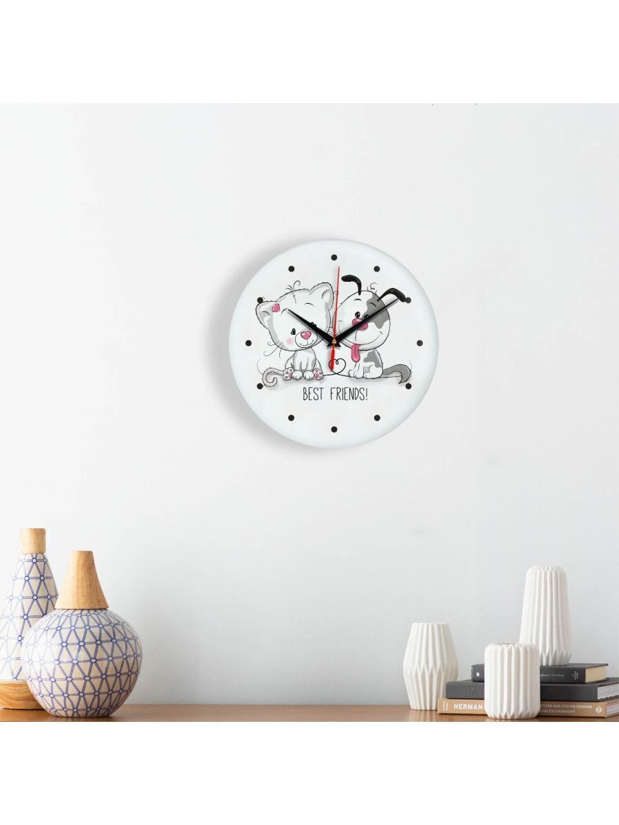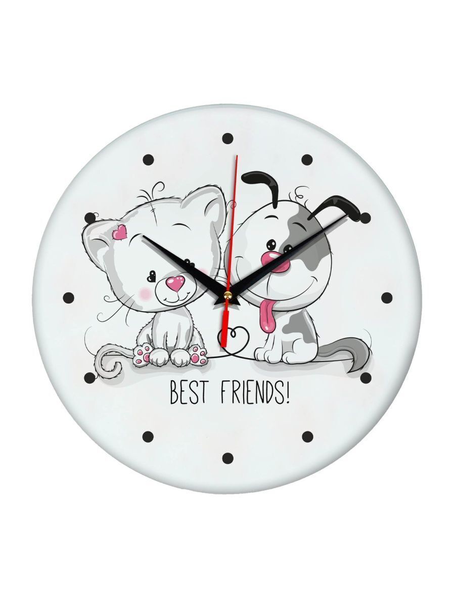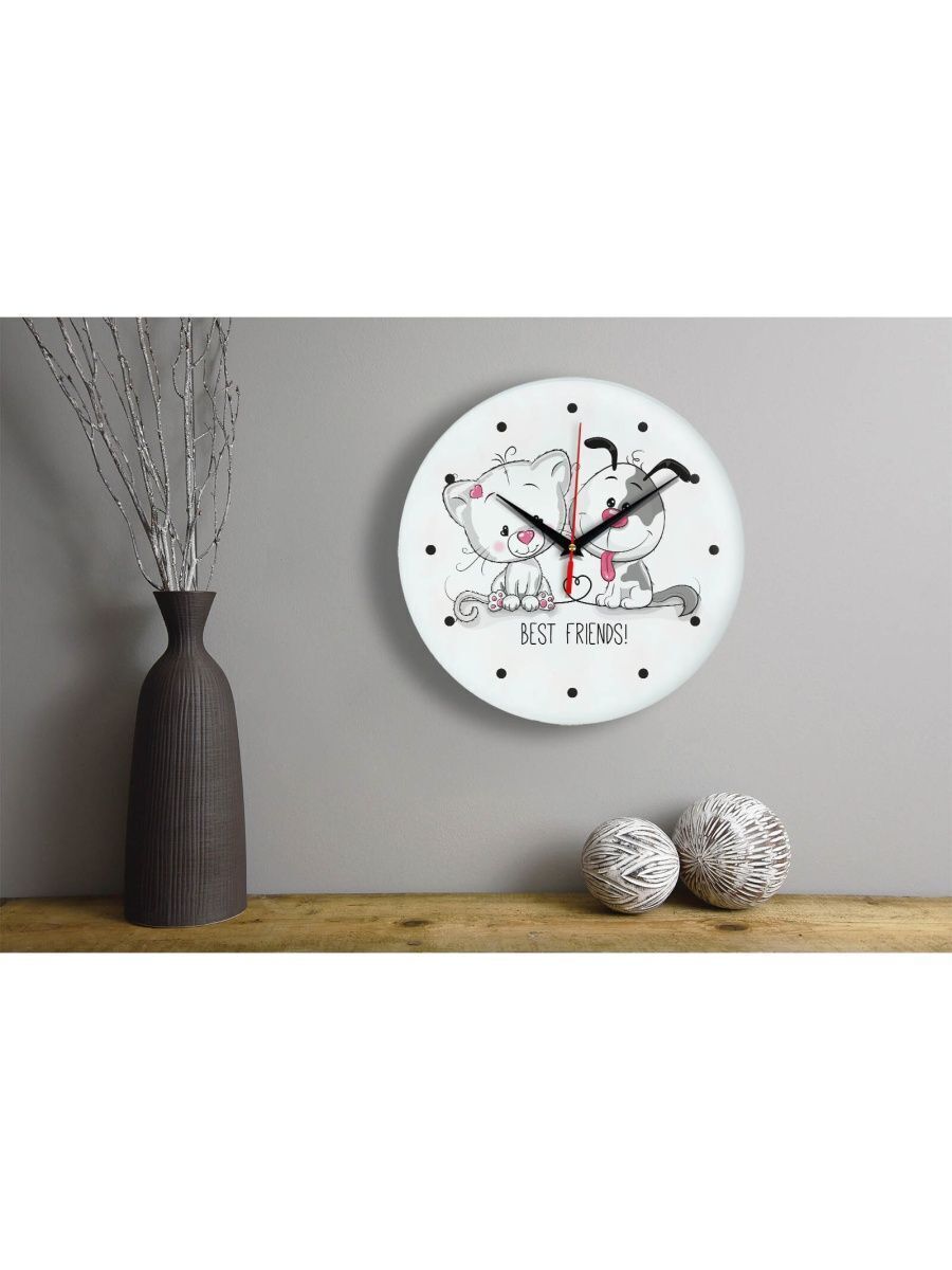 Сувенир и подарок часы "Кот и собака - лучшие друзья" размер часов с именем 28х28 см, стекло 4 мм, изображение печатаем ULTRA HD качества. Оно нанесено с обратной стороны. Стекло дает глубокий оптический эффект и защиту от выгорания ярких цветов. Механизм кварцевый с плавным ходом работает от пальчиковой батарейки АА. Стекло закалено и покрыто с обратной стороны защитной пленкой для защиты изображения и для безопасности. Часы послужат отличным подарком на любой праздник - 23 февраля, 8 марта, новоселье, юбилей, Новый год - жене, мужу, бабушке, дедушке, брату, коллеге, другу. Упаковка из белого гофрокартона с дополнительными элементами для сохранности стеклянного циферблата. Размер упаковки: 0,3х0,3х0,04 м , масса 0,8 кг.