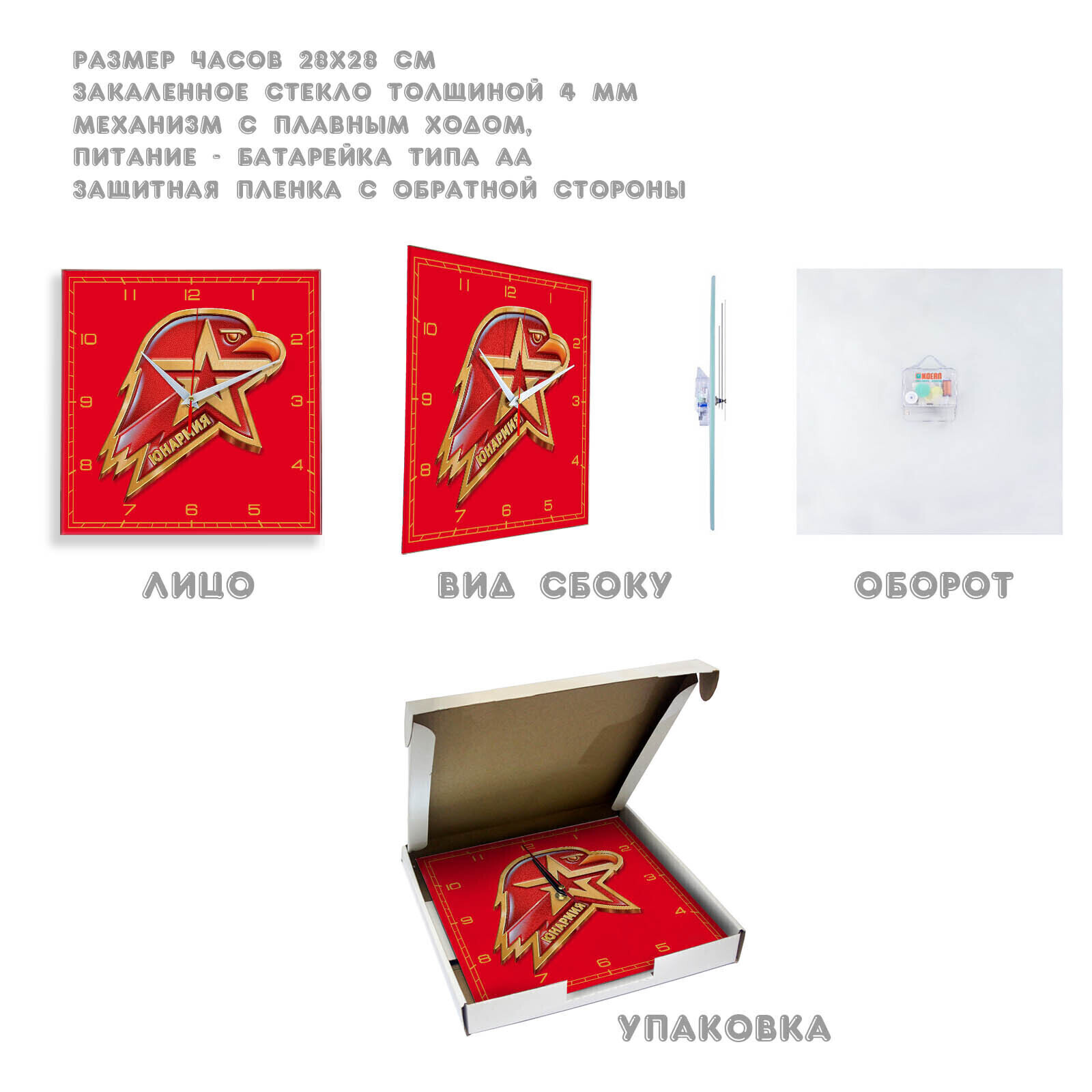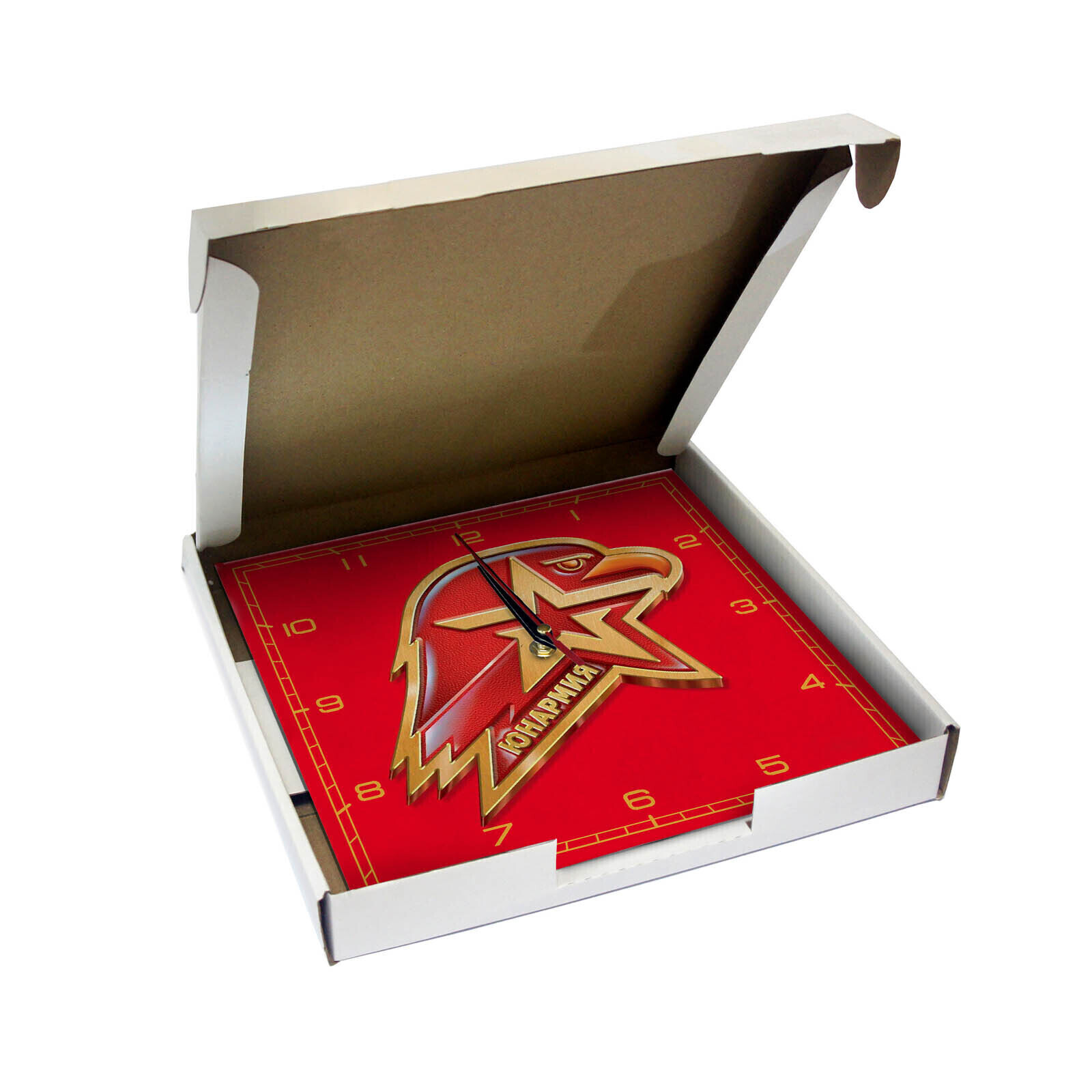 Сувенир и подарок часы unarmiya 01 размер часов с именем 28х28 см, стекло 4 мм, изображение печатаем ULTRA HD качества. Оно нанесено с обратной стороны. Стекло дает глубокий оптический эффект и защиту от выгорания ярких цветов. Механизм кварцевый с плавным ходом работает от пальчиковой батарейки АА. Стекло закалено и покрыто с обратной стороны защитной пленкой для защиты изображения и для безопасности. Упаковка из белого гофрокартона с дополнительными элементами для сохранности стеклянного циферблата. Размер упаковки: 0,3х0,3х0,04 м , масса 0,8 кг.