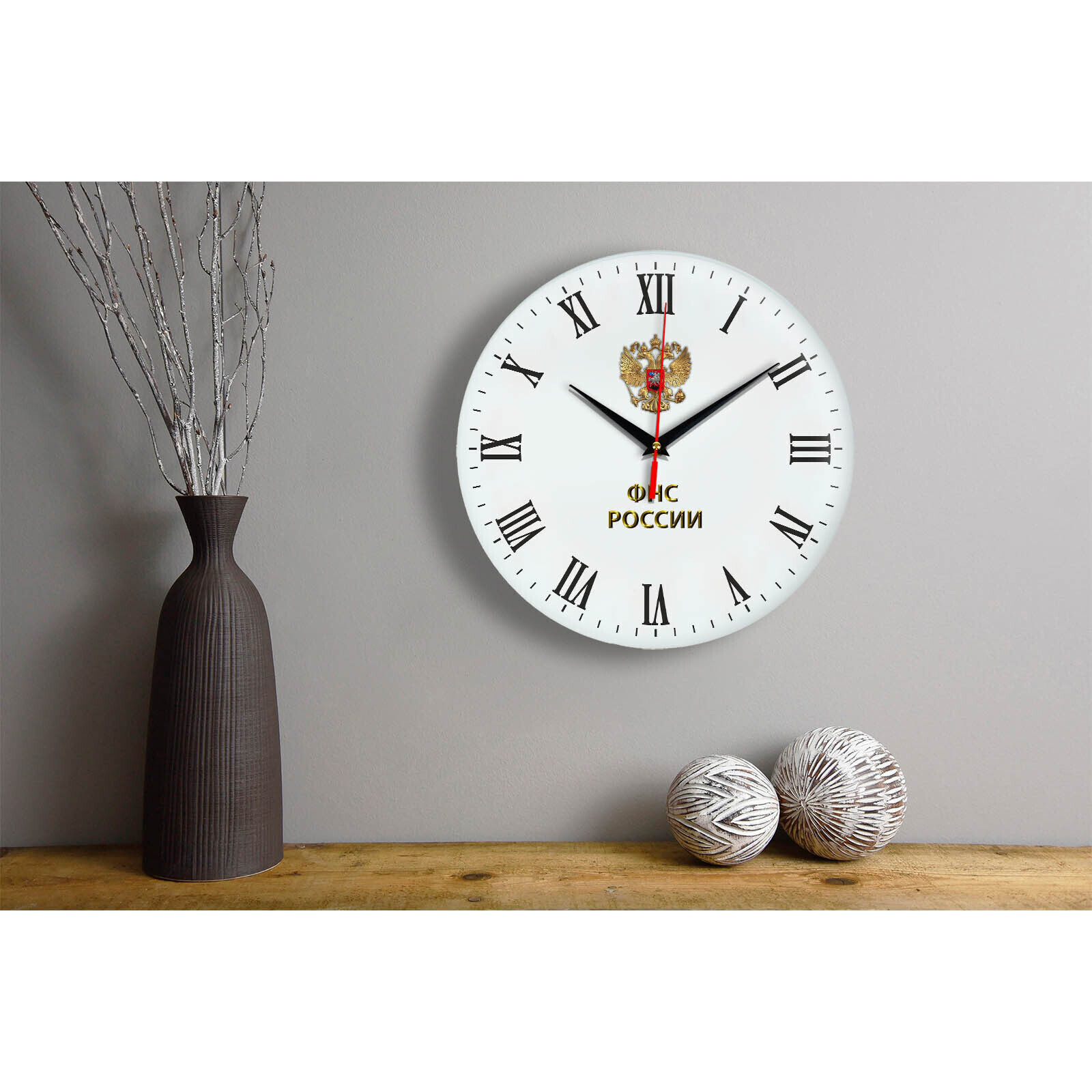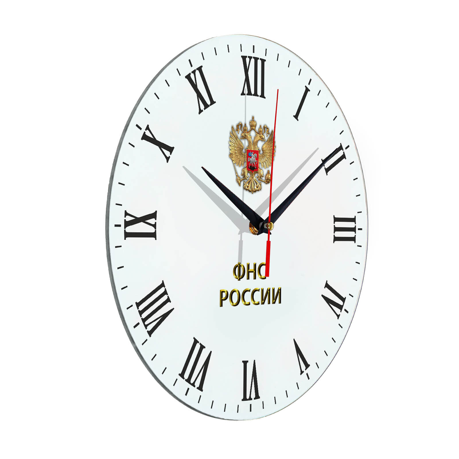 Сувенир с логотипом ФНС России, размер часов 28х28 см, стекло 4 мм, изображение печатаем ULTRA HD качества. Оно нанесено с обратной стороны. Стекло дает глубокий оптический эффект и защиту от выгорания ярких цветов. Механизм кварцевый с плавным ходом работает от пальчиковой батарейки АА. Стекло закалено и покрыто с обратной стороны защитной пленкой для защиты изображения и для безопасности. Упаковка из белого гофрокартона с дополнительными элементами для сохранности стеклянного циферблата. Размер упаковки: 0,3х0,3х0,04 м , масса 0,8 кг.